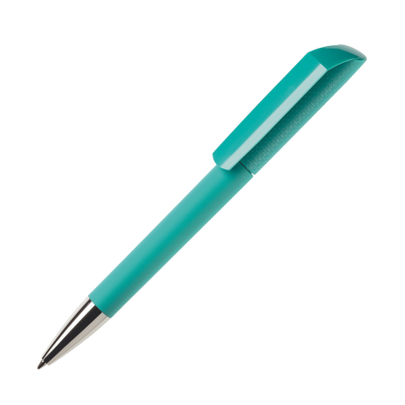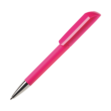 Maxema balpen FLOW GOM, draaibalpen met houder voorzien van rubbercoating, bovenstuk kunststof met opvallend motief, plastic clip en zilverkleurig puntstuk. Houder, clip en bovenstuk zijn leverbaar in maar liefst 22 kleuren welke vanaf 2.000 stuks onderling qua kleur gecombineerd kunnen worden. Voorzien van Jumbo vulling met blauwe Dokumental inkt voor tot 2.500 meter schrijfplezier, code F1 ? B 30 CR