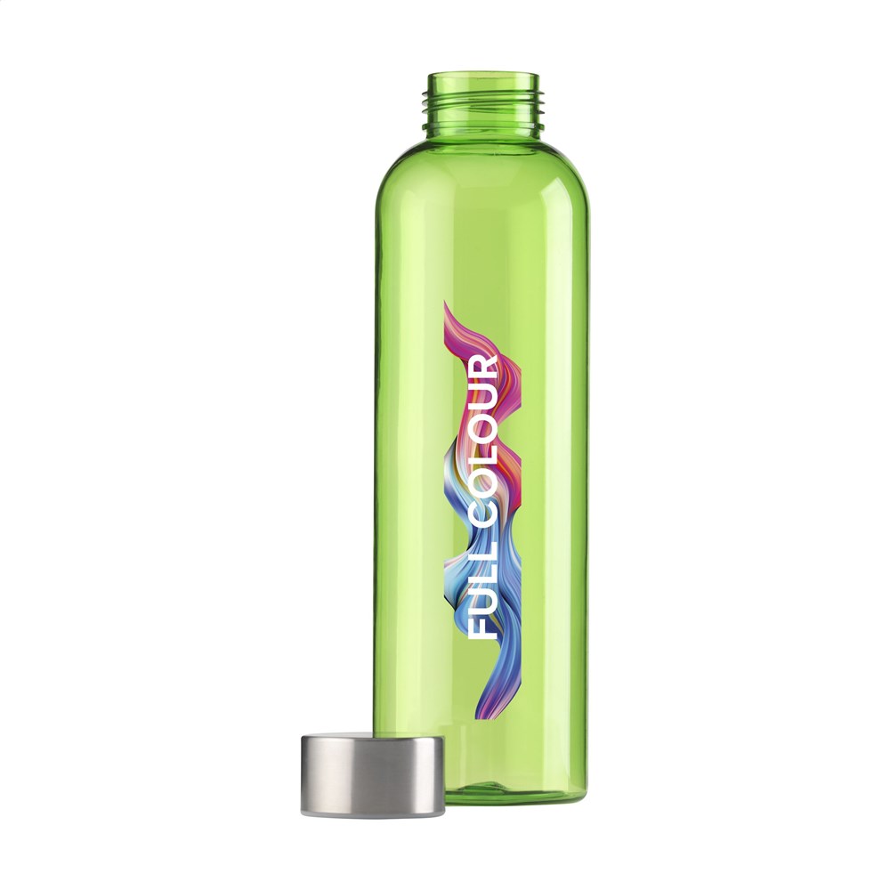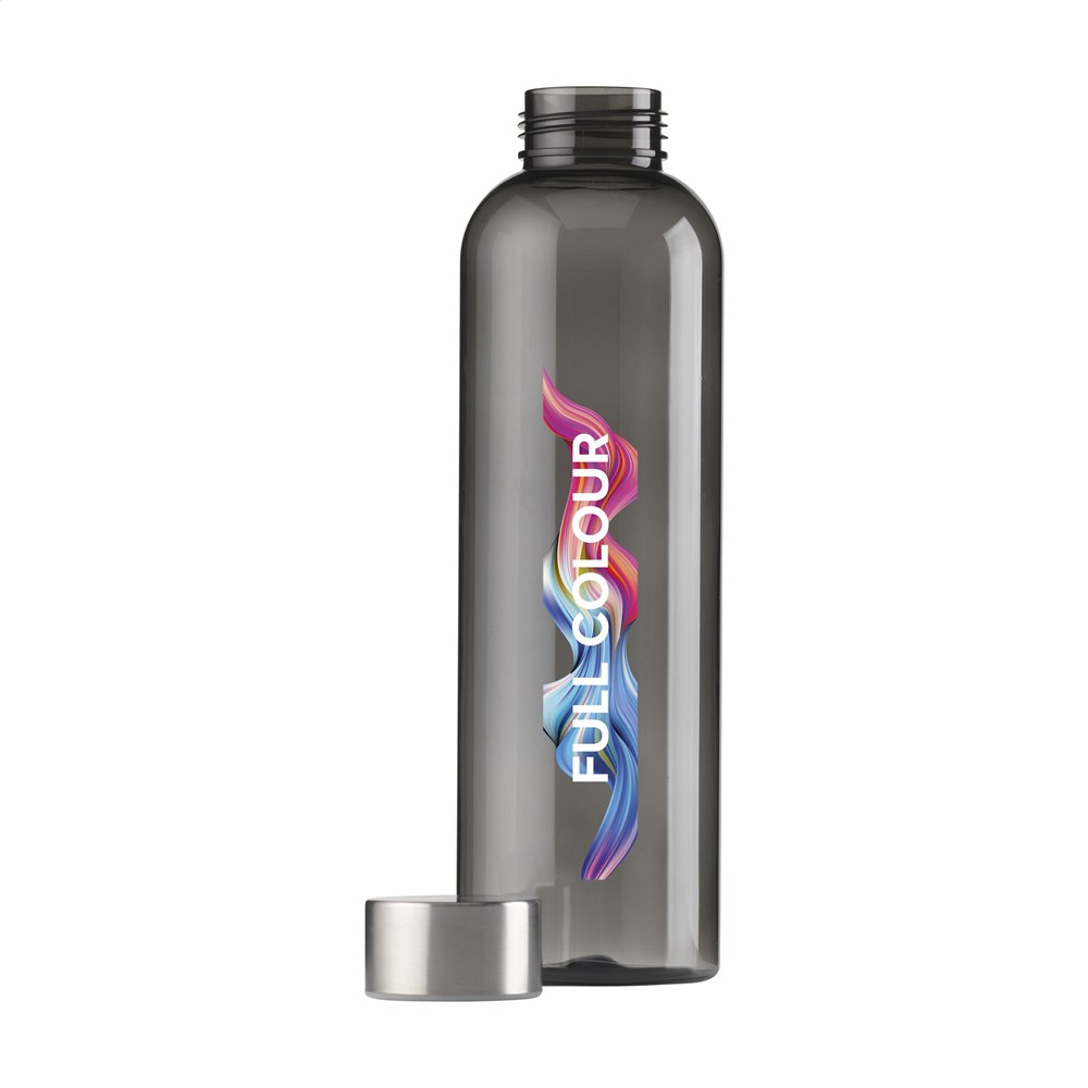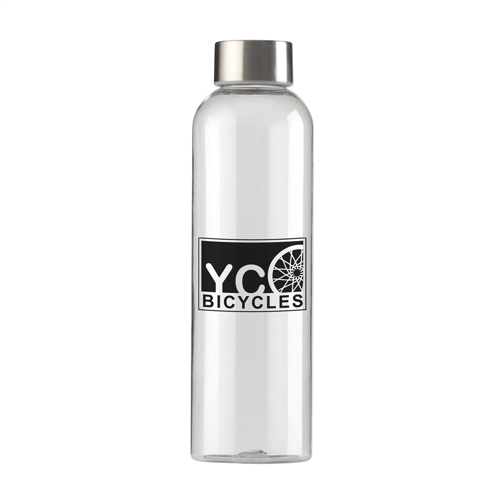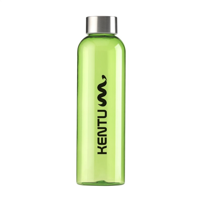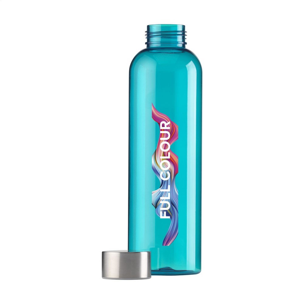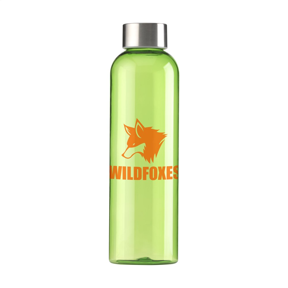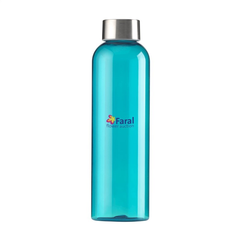 Transparantgekleurde, BPA-vrije waterfles van duurzaam Eastman Tritan™. Met RVS schroefdop. Het slanke design valt direct op en ligt bijzonder prettig in de hand. Lekvrij. Inhoud 650 ml.