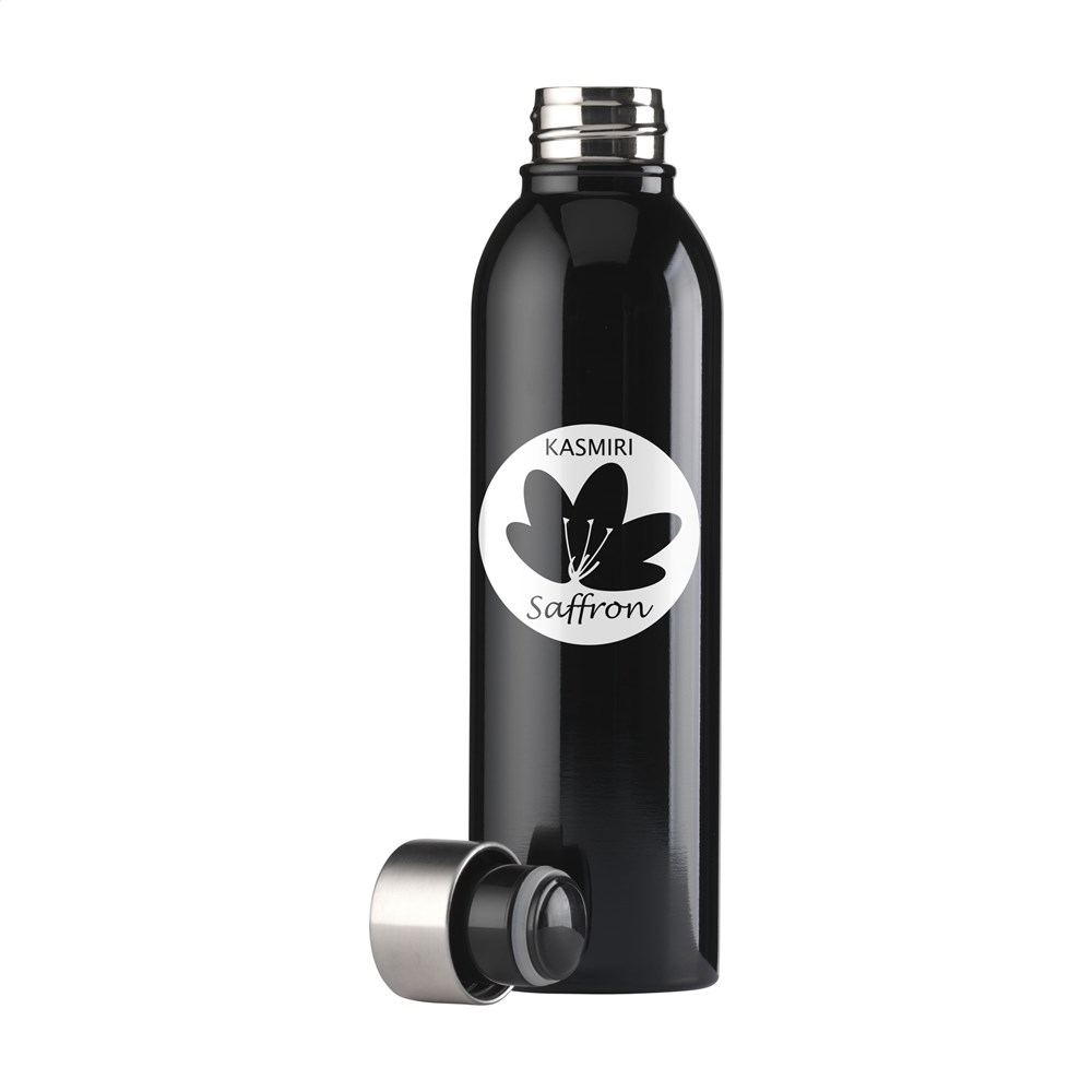 Slanke, dubbelwandige RVS waterfles/thermosfles met hoogglans toplaag en geborstelde RVS schroefdop. Geschikt voor het op temperatuur houden van koude of warme dranken. Lekvrij. Inhoud 500 ml. Per stuk in doos.