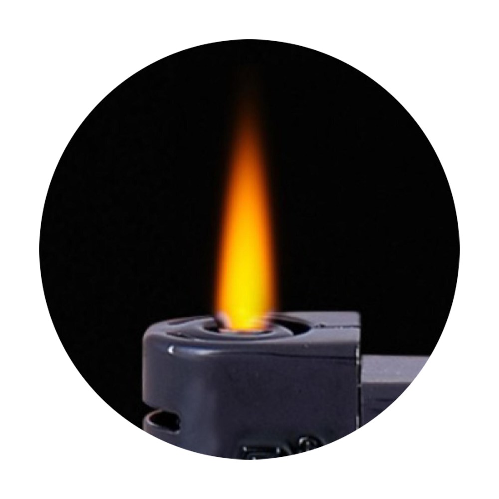 Elektronische, navulbare aansteker van het merk Flameclub®. Met vlamregelaar. Windproof. Ook als er een krachtige wind staat blijft de turbo vlam branden. Voorzien van kinderbeveiliging. TÜV-gecertificeerd.