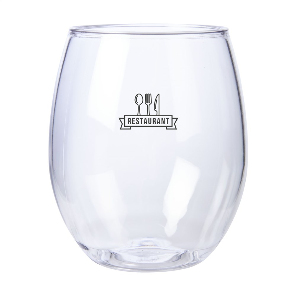 Bolvormig water-/wijnglas, vervaardigd van helder, transparant BPA-vrij copolyester Tritan-kunststof. Nagenoeg onbreekbaar, licht in gewicht. Zeer geschikt voor gebruik op (sport)events, festivals en concerten waar dikwijls een glasverbod geldt. Dit kwaliteitsglas is geschikt voor meermalig gebruik. Inhoud 400 ml.