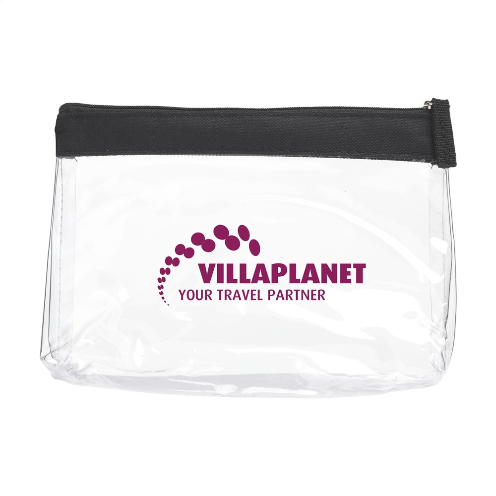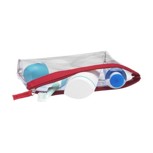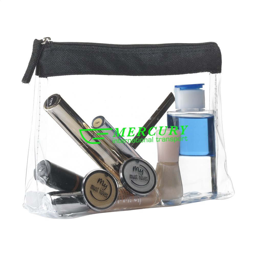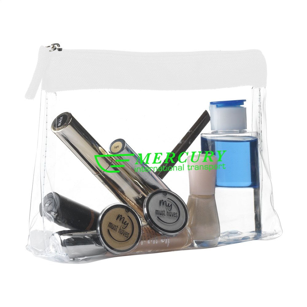 Stevige, transparante PVC toilettas met ritssluiting. Omdat de inhoud goed zichtbaar is mag dit etui mee door de douane en is het ideaal als handbagage toilettas.