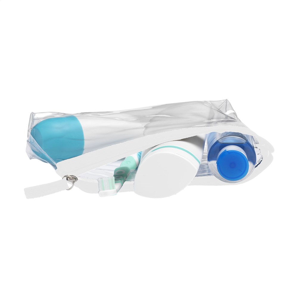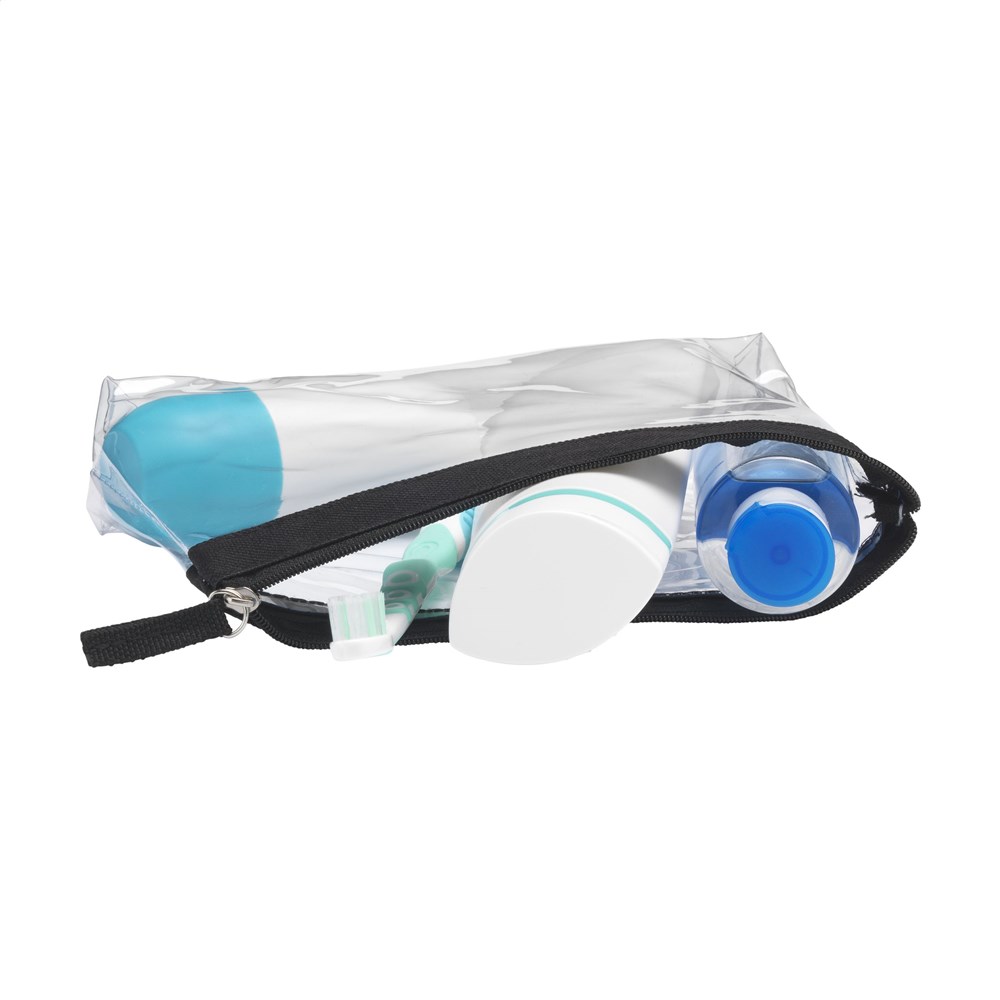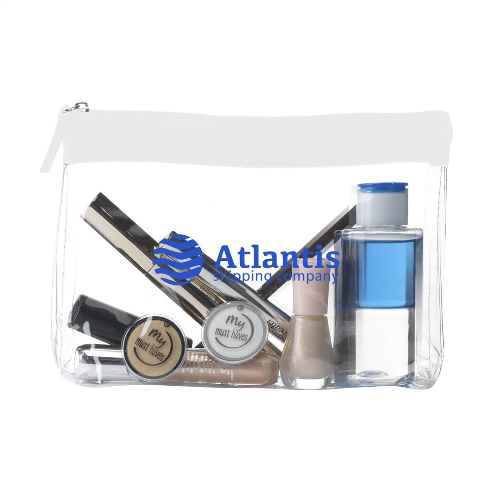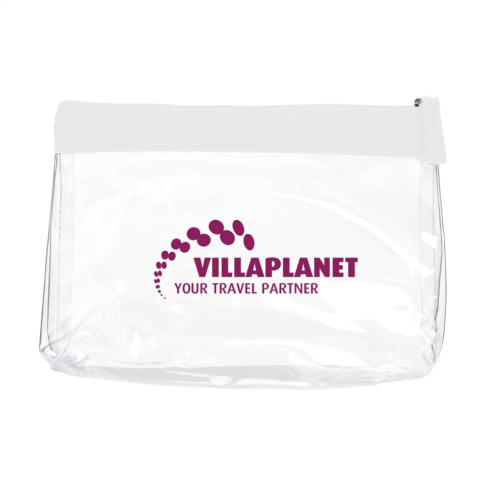 Stevige, transparante PVC toilettas met ritssluiting. Omdat de inhoud goed zichtbaar is mag dit etui mee door de douane en is het ideaal als handbagage toilettas.