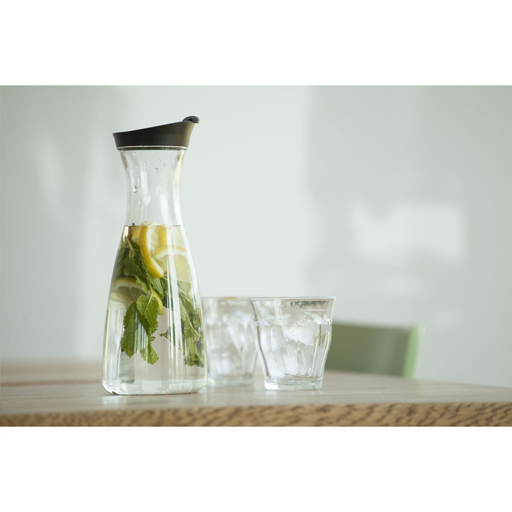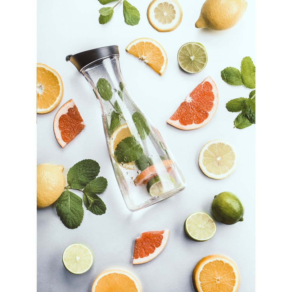 Elegante karaf van BPA-vrij Tritan kunststof. Met solid kunststof draaidop, schenkopening en handige kliksluiting. Deze lichtgewicht fles is geschikt als tafelfles voor het serveren van water, wijn of sap. Met royale opening voor het toevoegen van ijsklontjes en gemakkelijk te reinigen. Niet geschikt voor koolzuurhoudende dranken. Inhoud 1.100 ml.