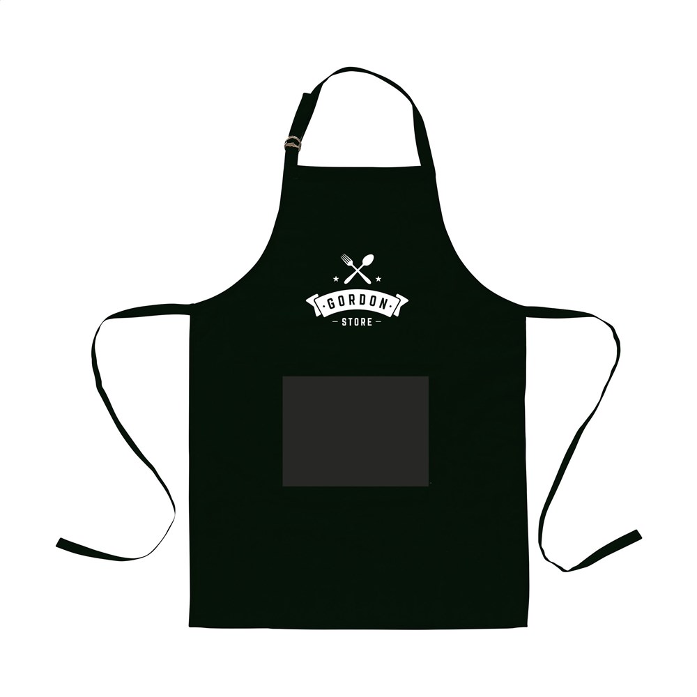 ECO schort van 100% organisch katoen (180 g/m²). Met een opgestikte zak. De nekband is middels een metalen gesp te verstellen. Past altijd. Duurzaam en milieuvriendelijk.