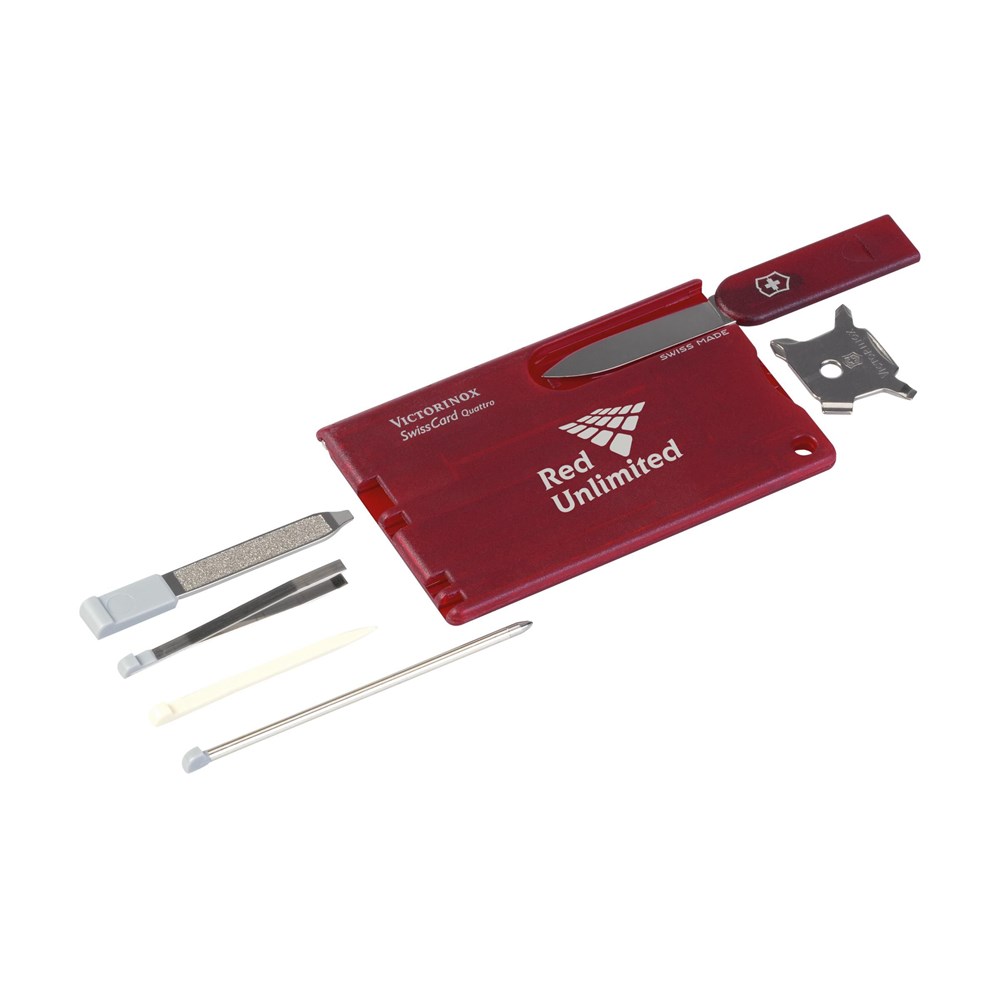 Swisscard. Dit product van Victorinox staat voor kwaliteit! In de kunststof SwissCard, die ook als liniaal (7,5 cm en 3 inches) te gebruiken is, tref je een aantal praktische voorwerpen aan: schroevendraaier, mes, nagelvijl met schroevendraaier, tandenstoker, pincet, balpen en knopspeld. Gemakkelijk mee te nemen. Afm. 8,1 x 5,3 x 0,4 cm. Per stuk in een speciaal ontworpen doosje. Afm. 12 x 12 x 0,7 cm. 75 g. Inclusief gebruiksaanwijzing en levenslange garantie.