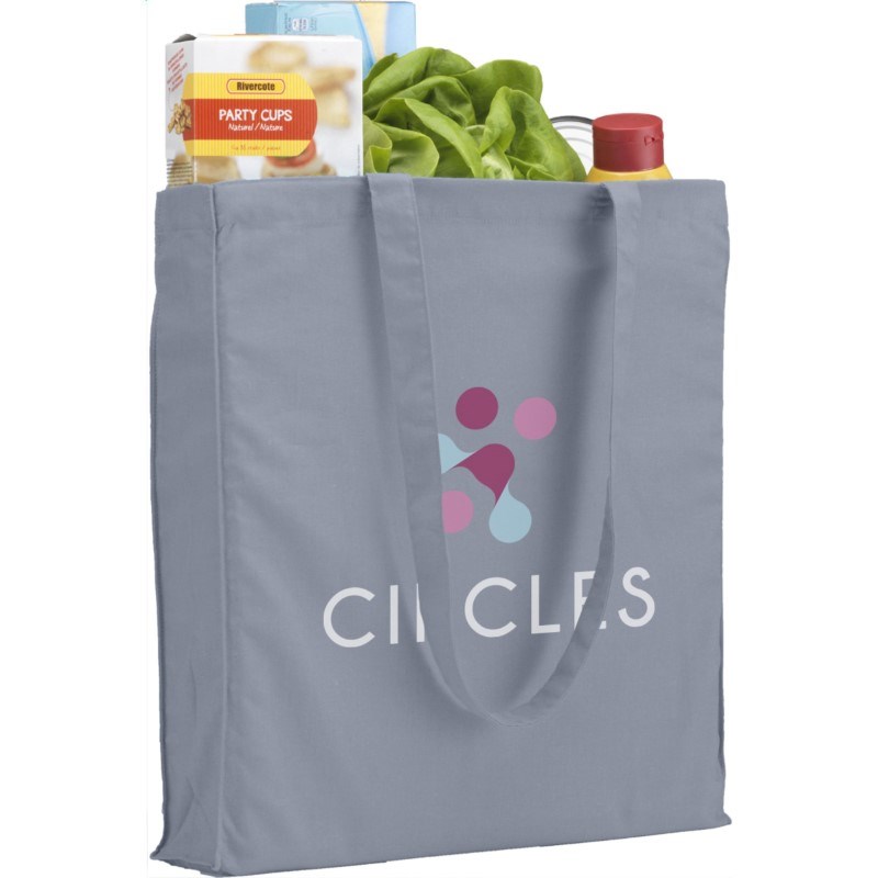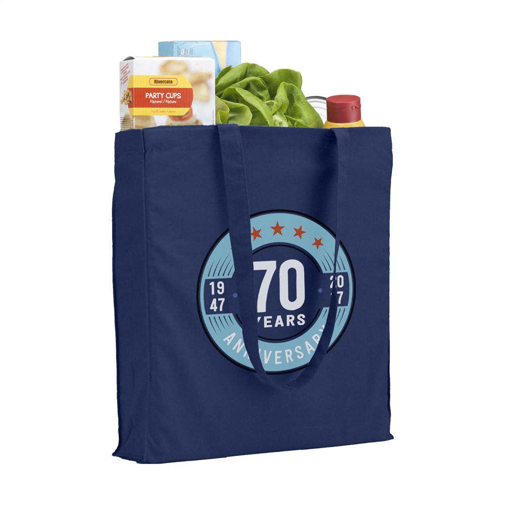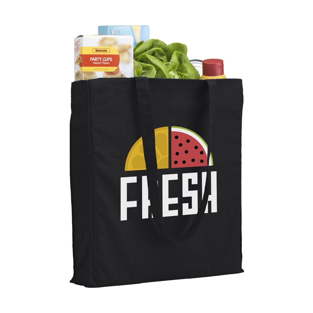 Stevige winkeltas met lange hengels. Van 100% geweven katoen (160 g/m²).