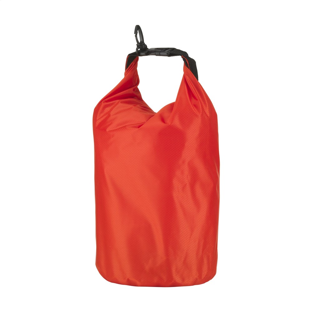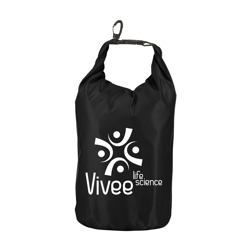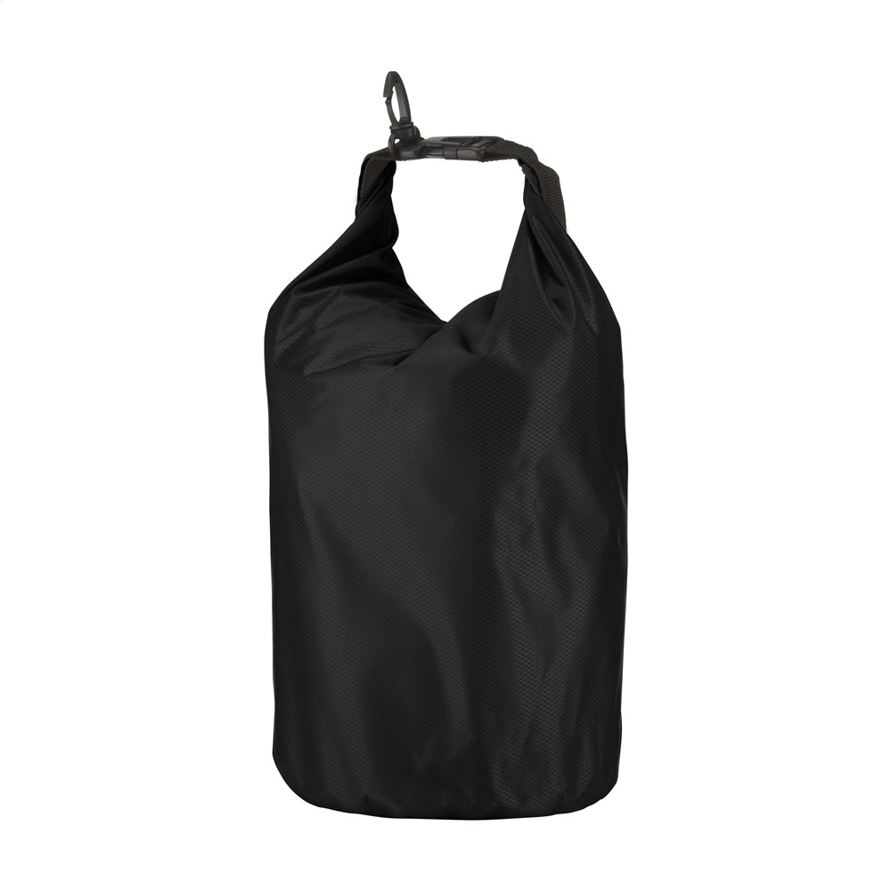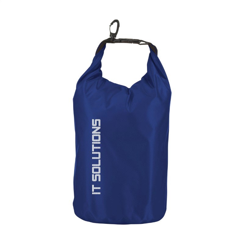 Stevige tas van 210T ribstop polyester/PVC, voor het droog houden van persoonlijke items. De tas blijft drijven op het water en is bestand tegen waterstralen en spatten, maar mag niet ondergedompeld worden. Met rolsluiting aan de bovenzijde, kliksysteem en handige karabijnhaak voor het makkelijk aanhaken aan overige bagage of riemen. Inhoud 5 liter.