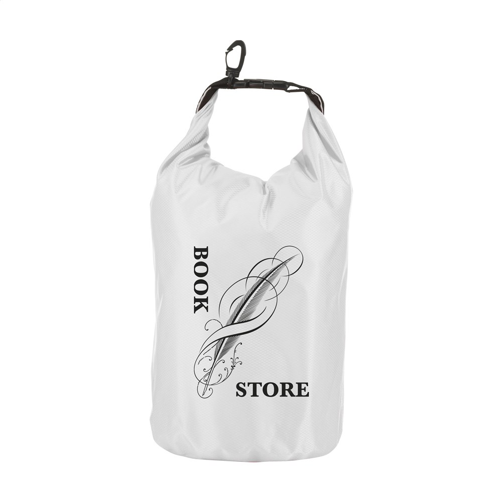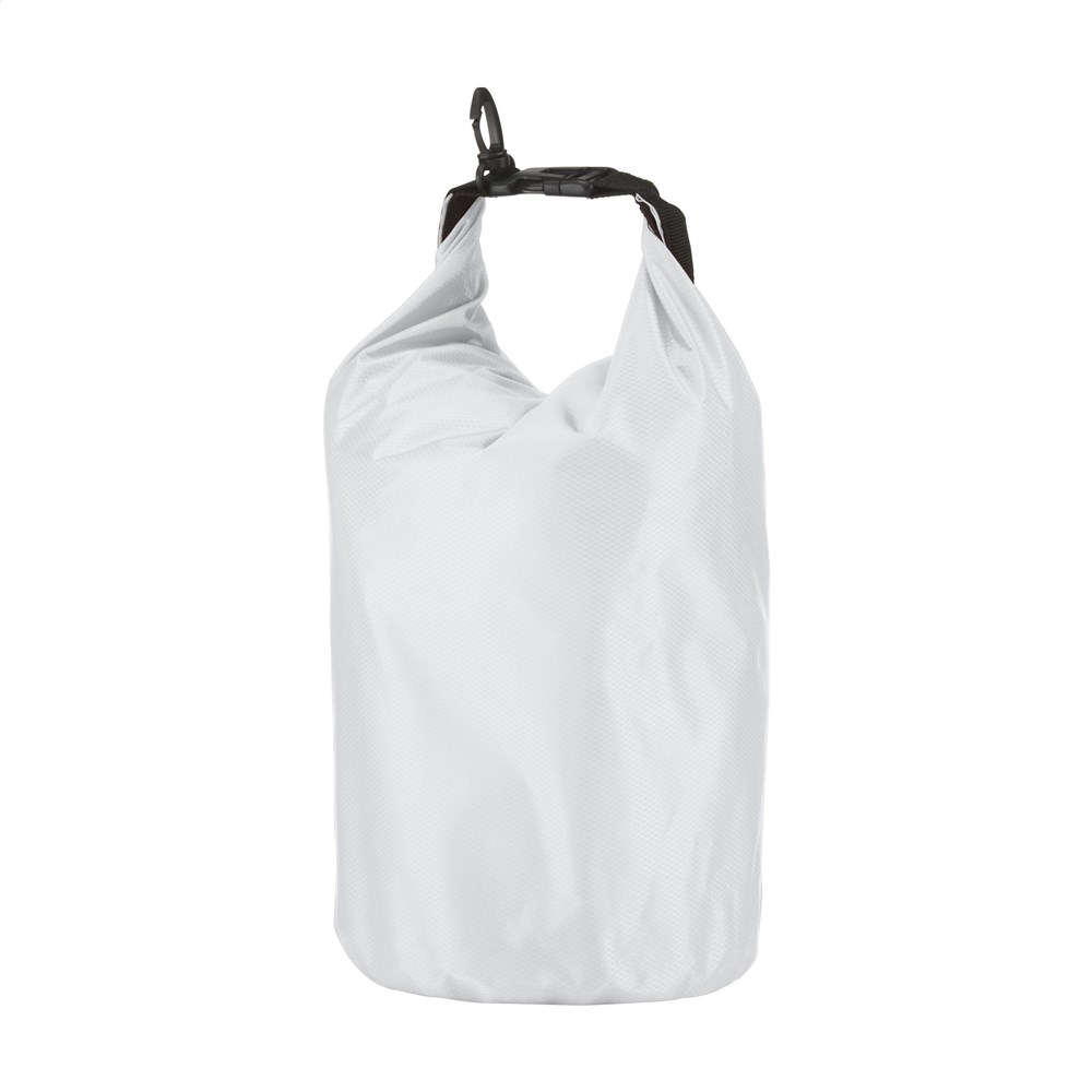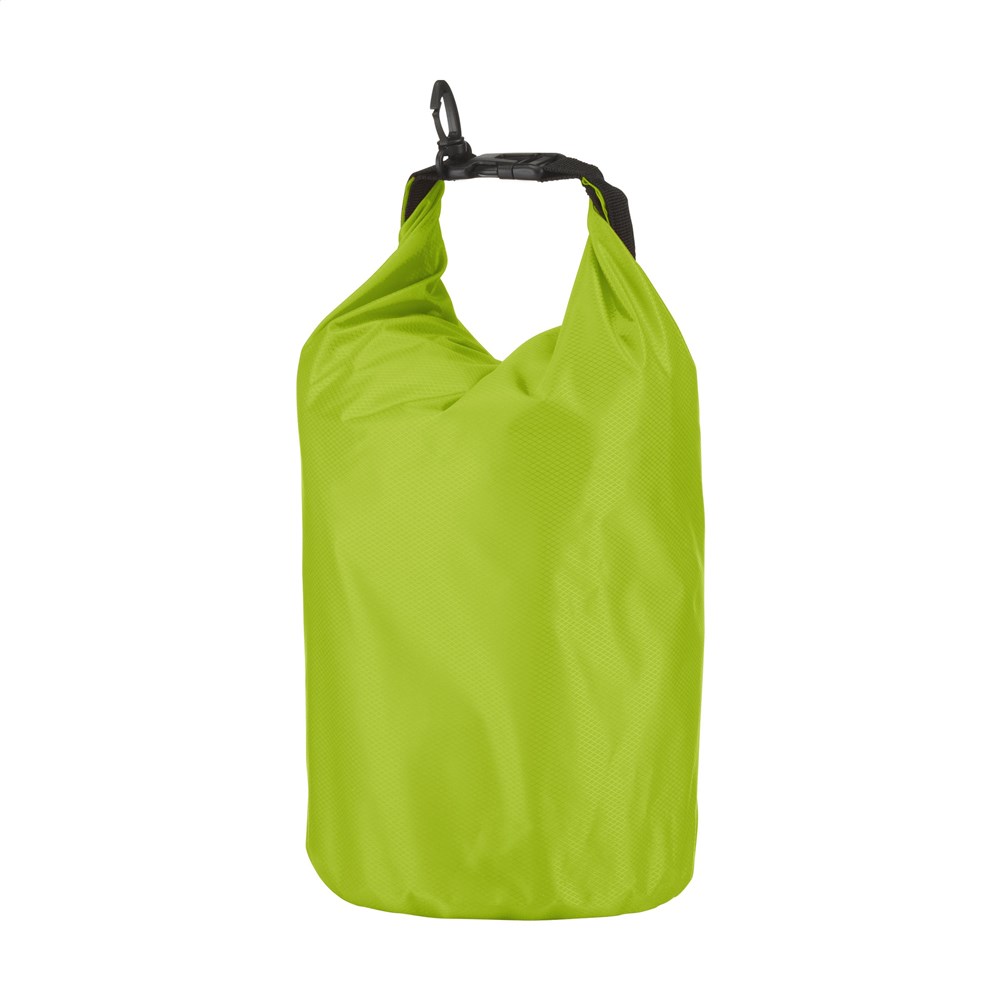 Stevige tas van 210T ribstop polyester/PVC, voor het droog houden van persoonlijke items. De tas blijft drijven op het water en is bestand tegen waterstralen en spatten, maar mag niet ondergedompeld worden. Met rolsluiting aan de bovenzijde, kliksysteem en handige karabijnhaak voor het makkelijk aanhaken aan overige bagage of riemen. Inhoud 5 liter.