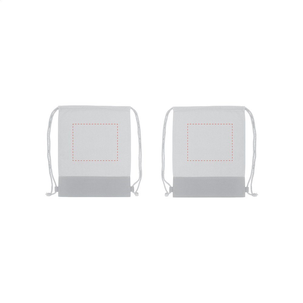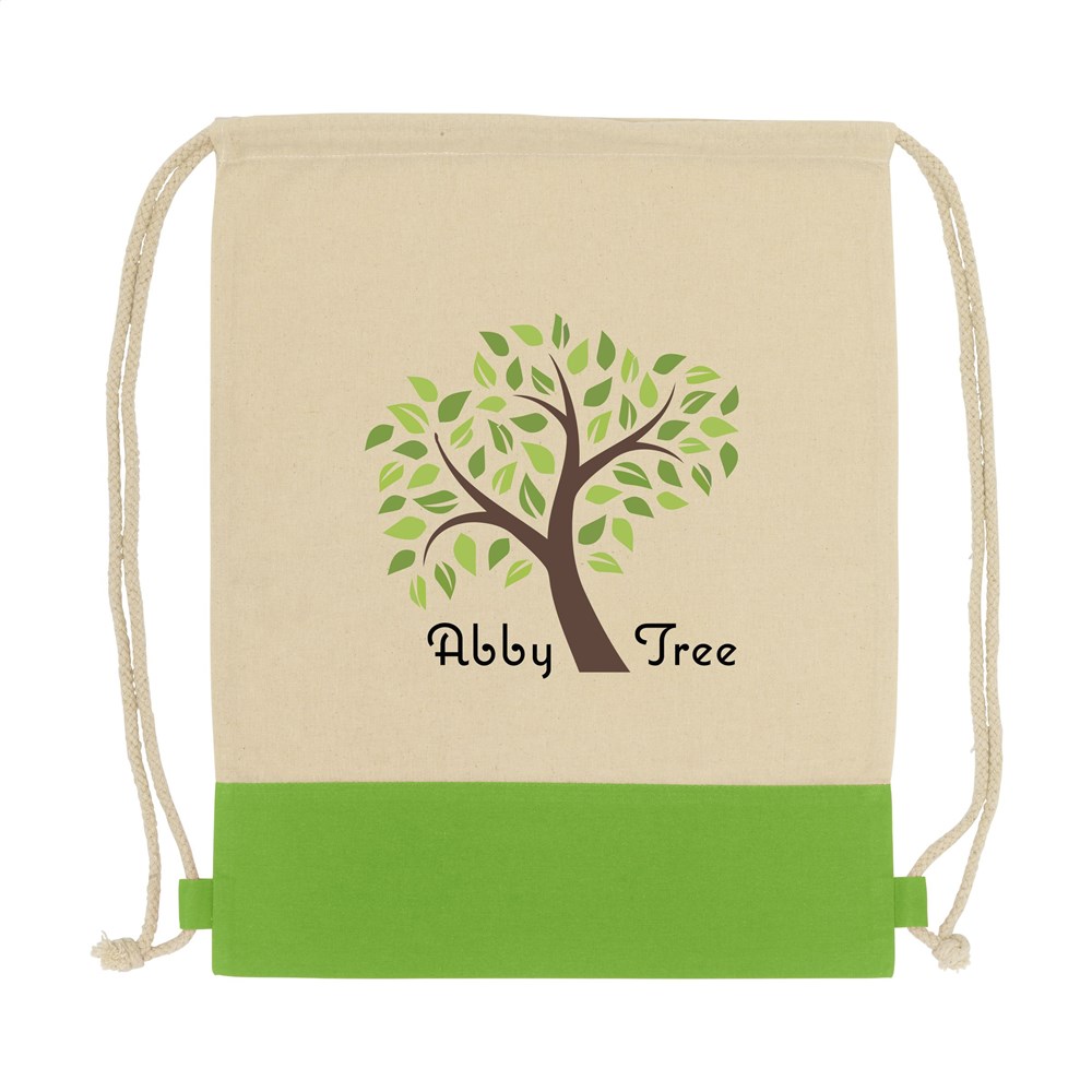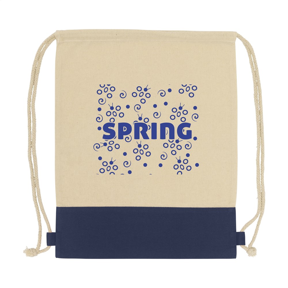 Rugzak met aanrijgkoorden van 100% natuurlijk katoen (140 g/m²) en een inzet in kleur. Inhoud ca. 8 liter.