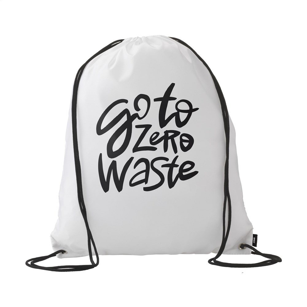 Rugzak van 210D RPET polyester: gemaakt van gerecyclede PET-flessen. Met aanrijgkoord. Duurzaam, milieuvriendelijk en ecologisch verantwoord. Inhoud ca. 8 liter.