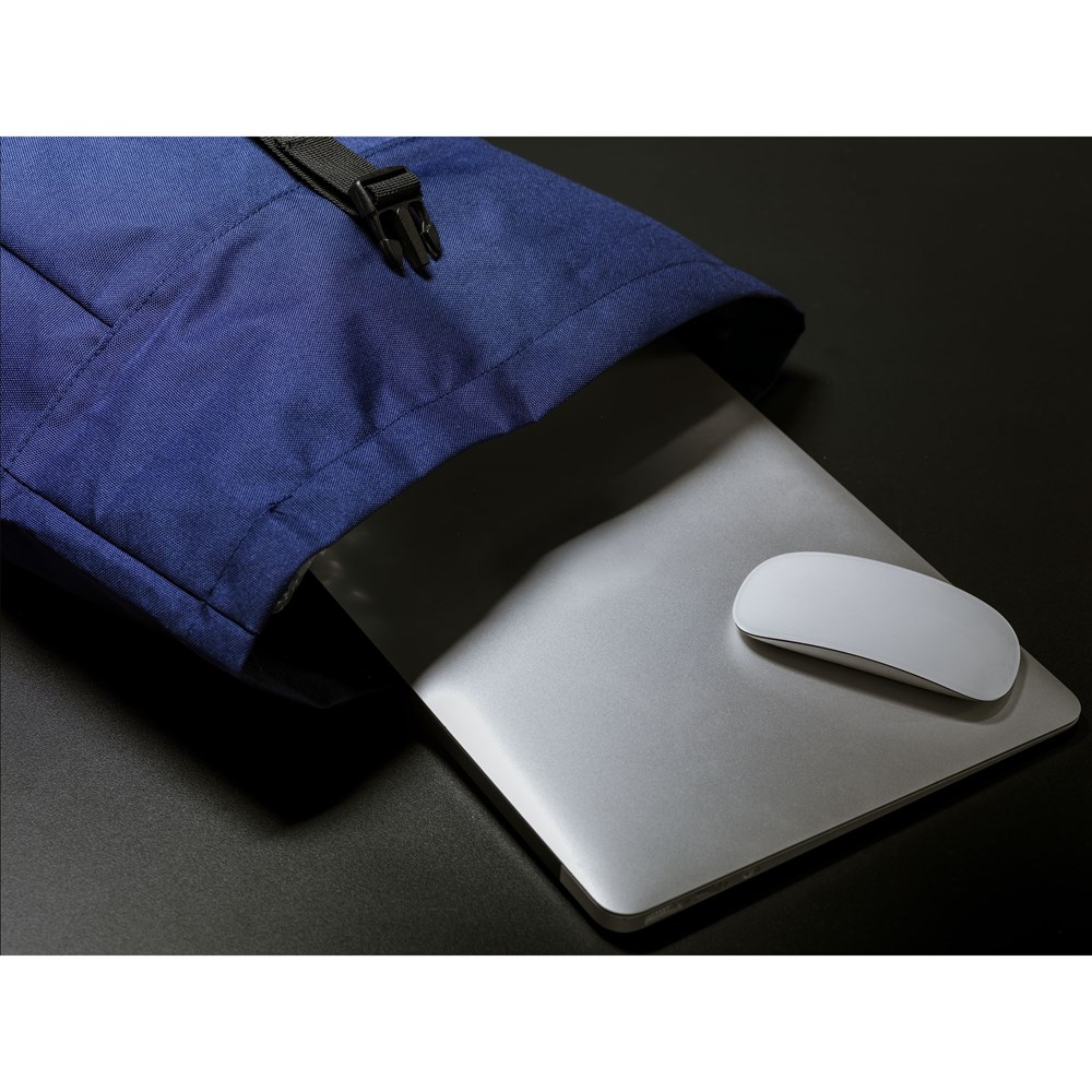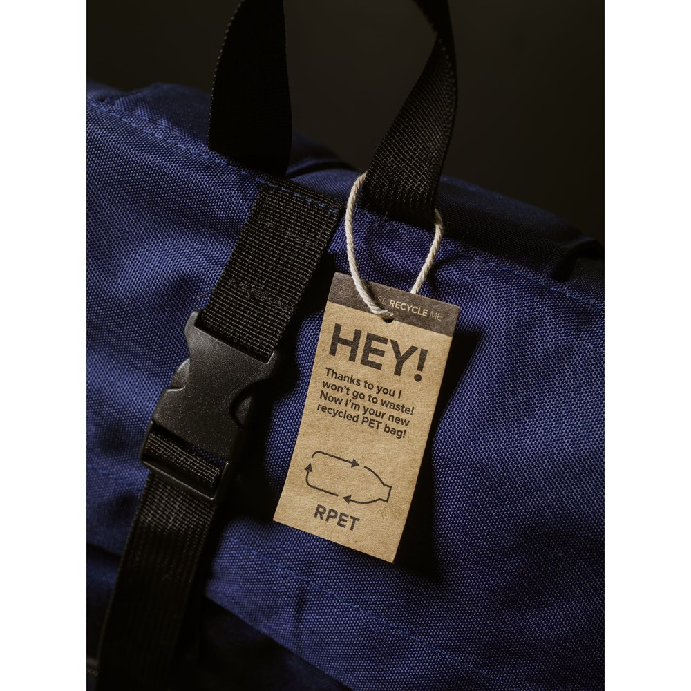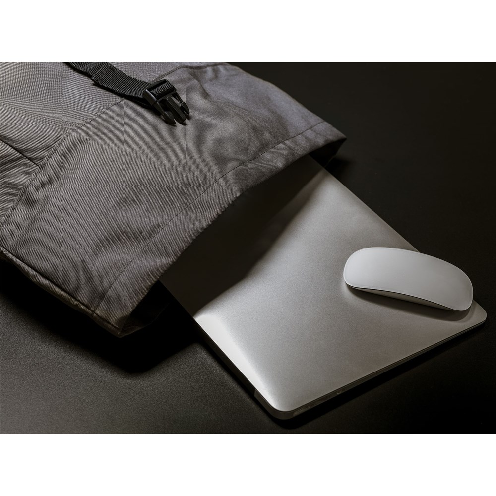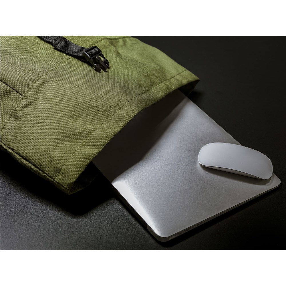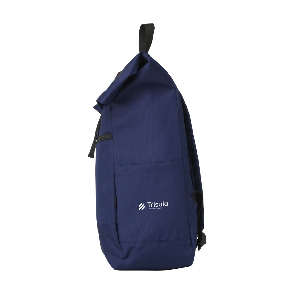 Praktische, stevige en waterafstotende ‘roll-top’ rugzak van RPET Polyester (gemaakt van gerecyclede PET-flessen). De rugzak heeft een groot binnenvak met speciaal laptopcompartiment (tot 15.4 inch). Ritsvak aan de voorzijde met daaronder een reflecterend accent (wat de zichtbaarheid in het donker verbetert). Met 2 zijvakken, foam rugzijde en gewatteerde, verstelbare schouderriemen voor meer draagcomfort, draaglus en handige rolsluiting met kliksysteem aan de bovenzijde. De perfecte tas, met een minimale ecologische footprint, voor dagelijks gebruik. Inhoud ca. 24 liter.