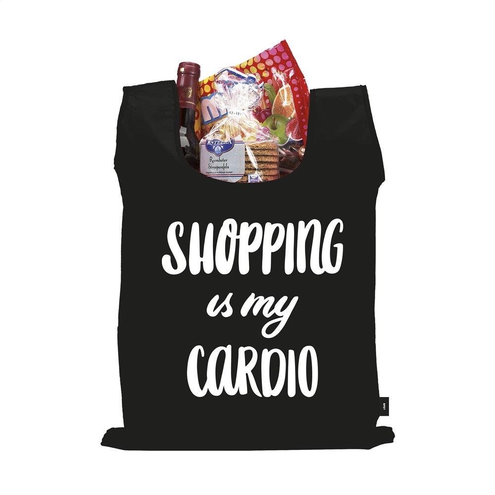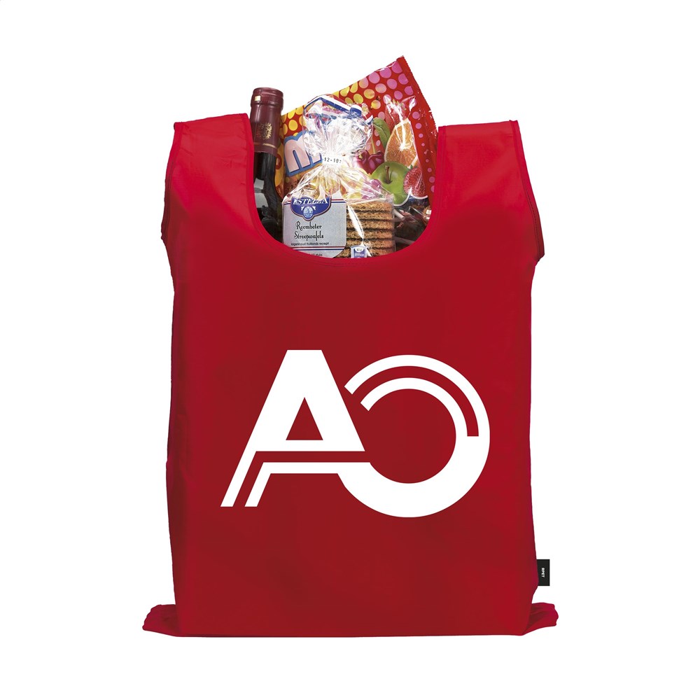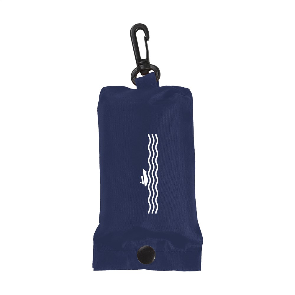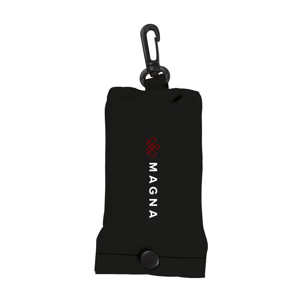Opvouwbare winkeltas van 190T RPET polyester; gemaakt van gerecyclede PET-flessen. In etui met drukknoop en karabijnhaak. Afm. uitgevouwen 53 x 38 cm.