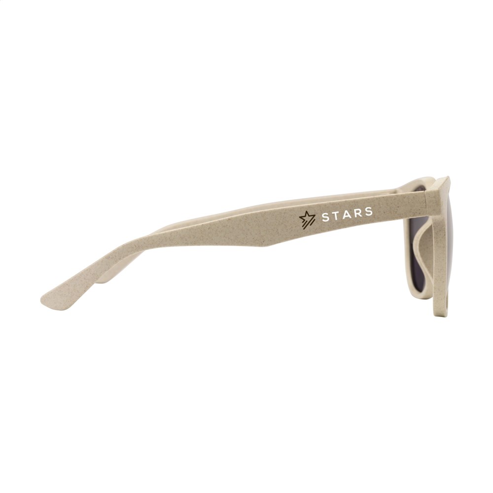 Modieuze eco-vriendelijke zonnebril. Het frame is gemaakt van biologisch afbreekbare tarwestro-vezels en PP. Met UV 400 bescherming (volgens Europese normen).