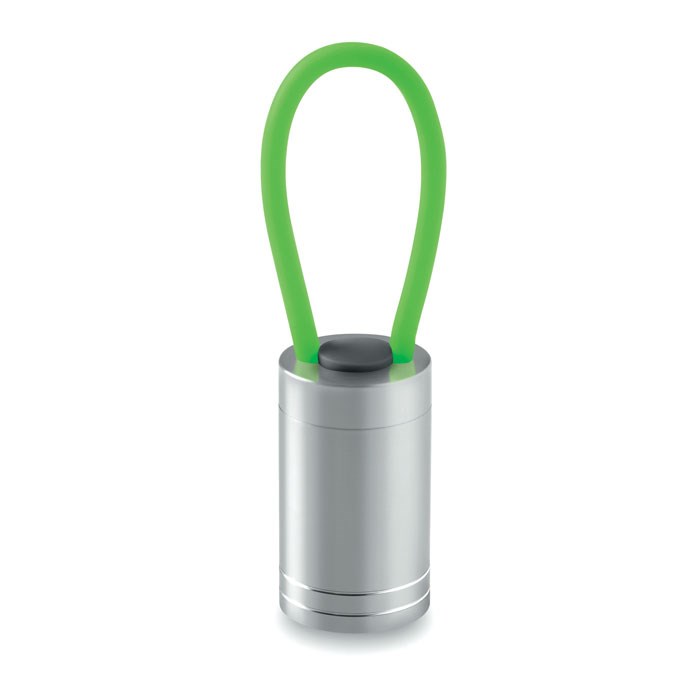 Aluminium zaklamp met 6 LED-lampjes inclusief glow in the dark loop. Inclusief 2 CR2032-batterijen.