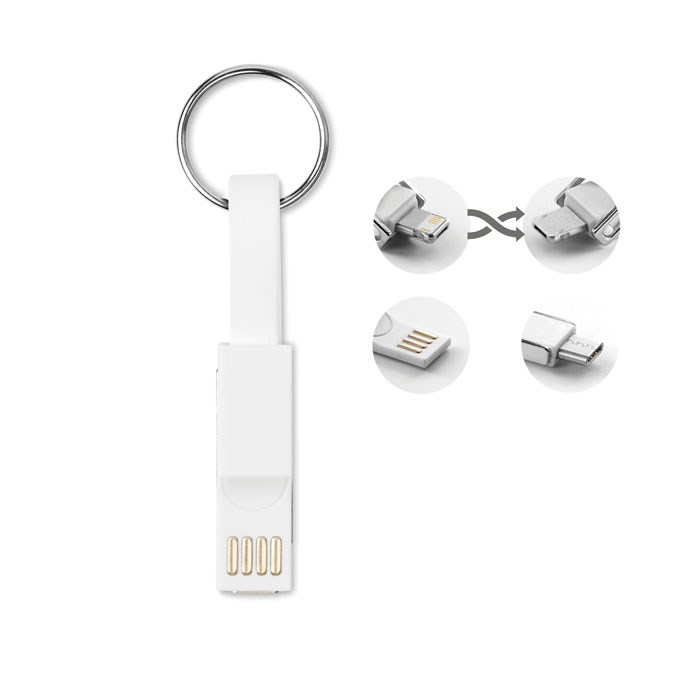 Sleutelhanger met oplaadkabel van USB A naar Micro B (2-in-1) en Type-C van TPE. Met magneetsluiting.