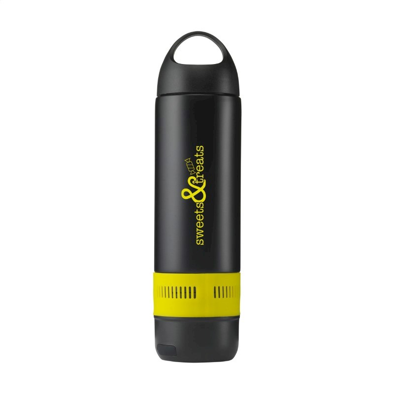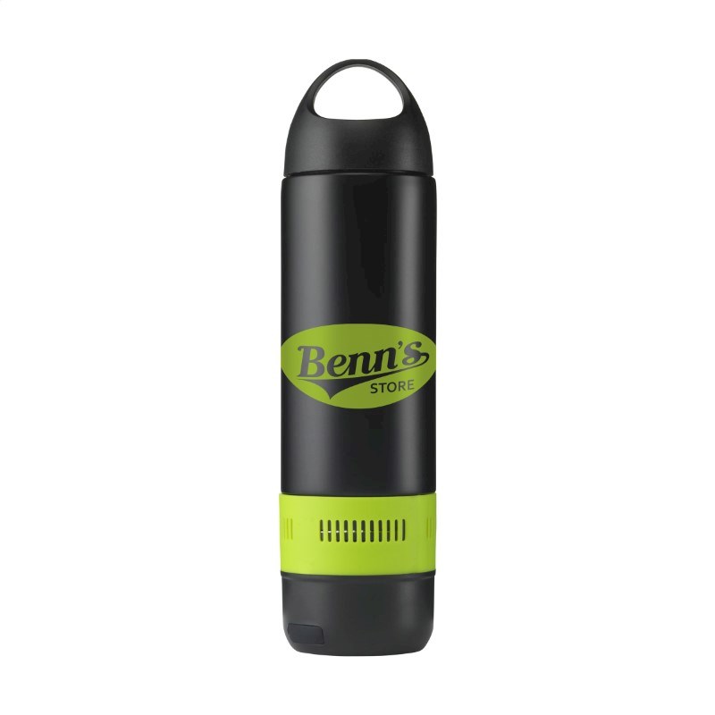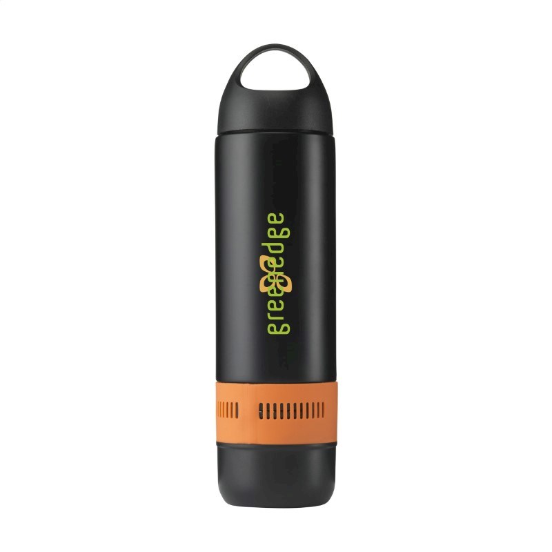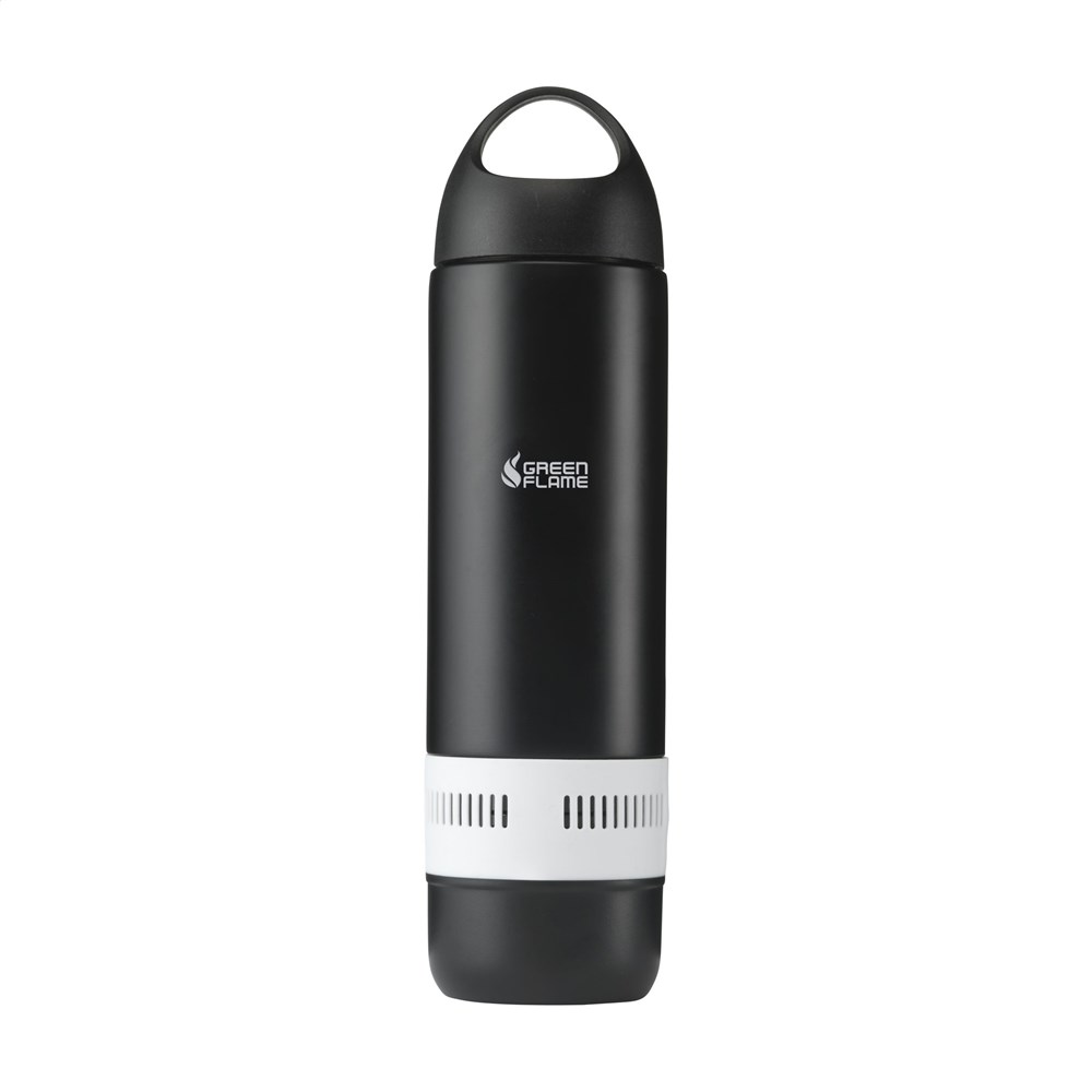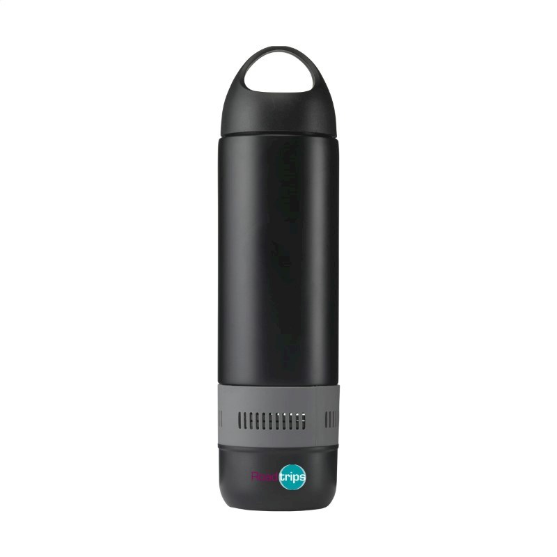Thermosfles en speaker ineen. Dubbelwandige RVS thermofles voor het lang warm of koel houden van dranken. Met mooie matzwarte finish en schroefdop. De afneembare, bluetooth (versie 4.2) speaker aan de onderzijde is compatibel met de meest gangbare smartphones en tablets. Bereik tot 10 meter. Ideaal tijdens je work out. Vermogen 3W. Frequentie: 20HZ-20KHz. Met ingebouwde 600mAh li-ion batterij voor lang luisterplezier. Inhoud fles 350 ml. Incl. micro-USB oplaadkabel en gebruiksaanwijzing. Per stuk in doos.