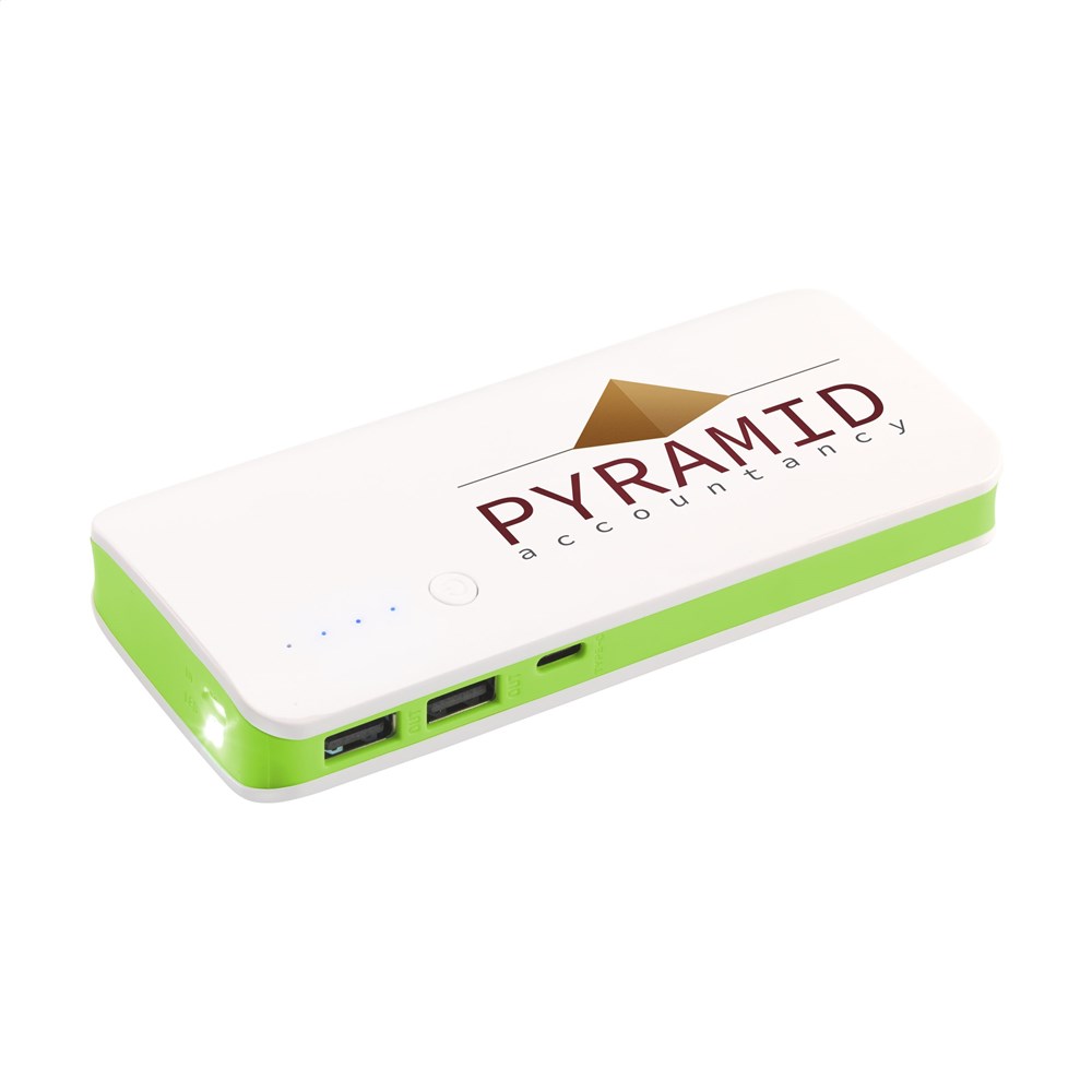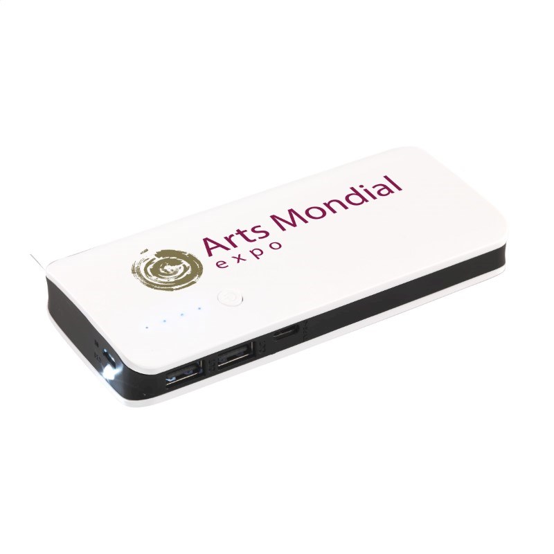 Zeer krachtige, 3-poorts, ABS powerbank met ingebouwde Li-ion batterij (10.000 mAh) voor het gelijktijdig opladen van maar liefst 3 apparaten. Input: DC5V/2.1A. Output USB 1, USB 2 & TYPE-C: DC5V/2.1A. Inclusief micro-USB oplaadkabel en gebruiksaanwijzing. Per stuk in doosje.