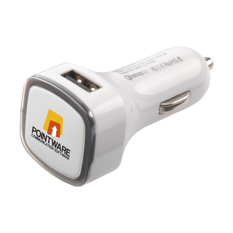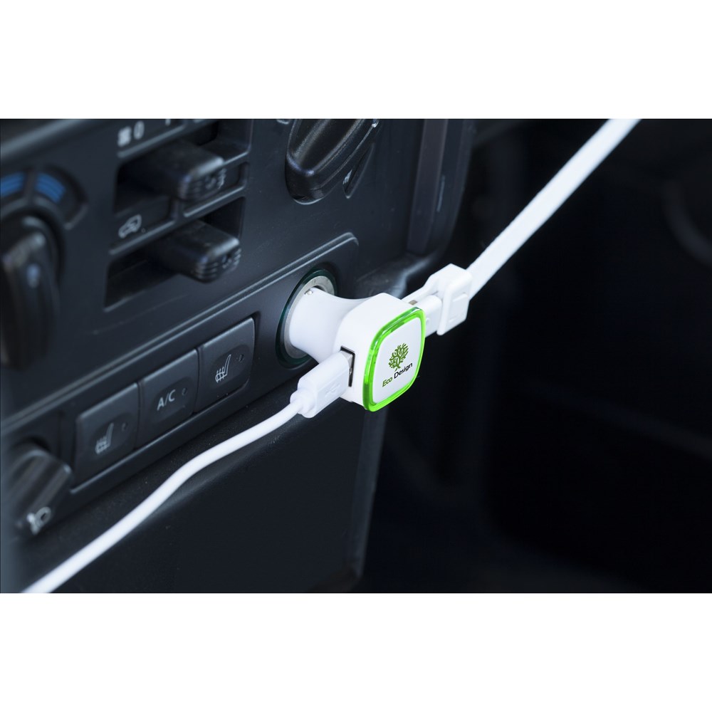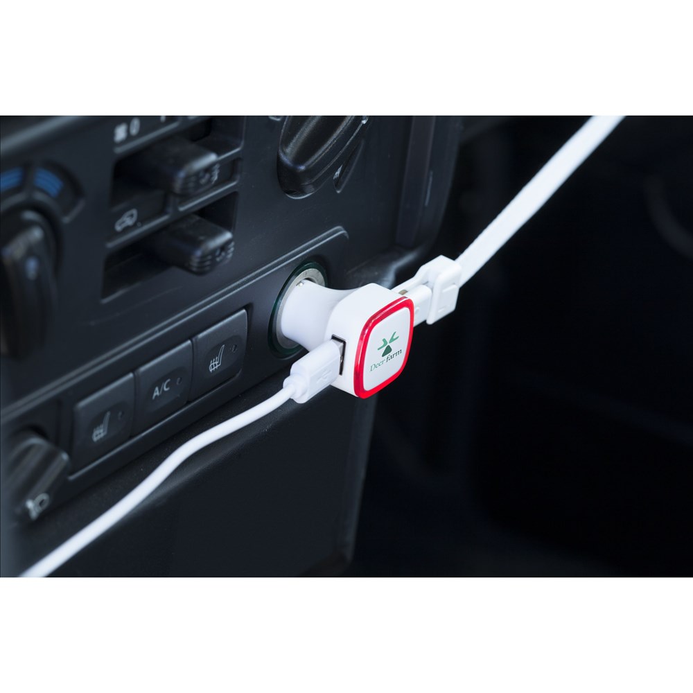 Oplaadstekker voor in de auto. Met oplichtende LED indicator en voorzien van 2 output poorten: USB en Type C. Ideaal voor het gelijktijdig opladen van de meest gangbare mobiele apparaten. Input: 12-24V. Output: Type C 5V/2.1A en USB - 5V/2.1A.