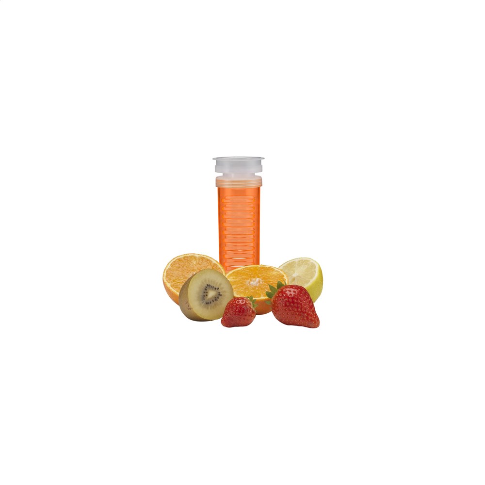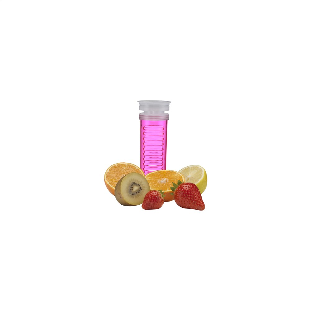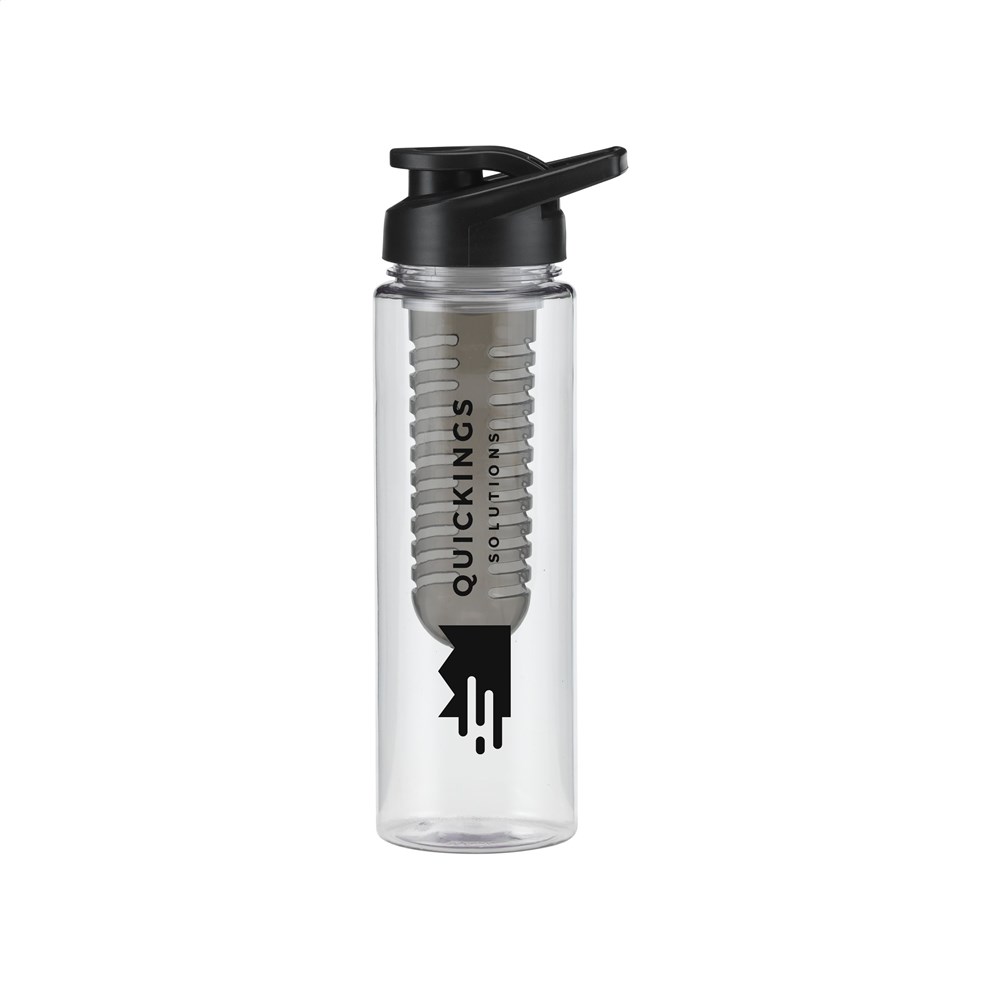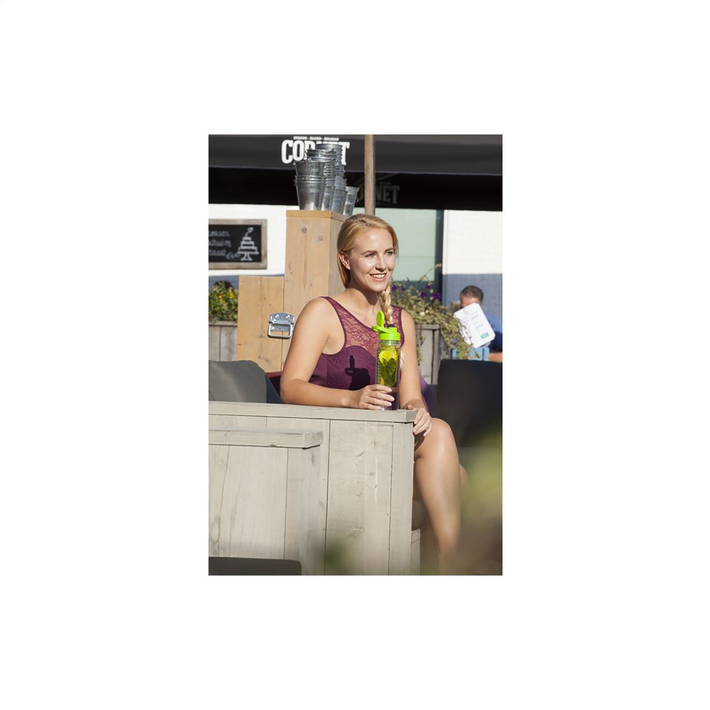 Waterfles met infuser. Van helder Tritan kunststof: milieuvriendelijk, BPA-vrij en duurzaam. Met gekleurde, praktische schroefdop en afsluitbare drinkopening. Vul het royale infuser compartiment met vers fruit of groente en creëer je eigen smaaksensatie. Inhoud 700 ml.