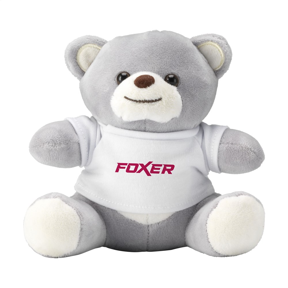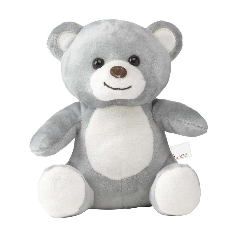 Lichtgrijze, superzachte knuffelbeer in mini formaat. Met kraalogen en verharde neus.