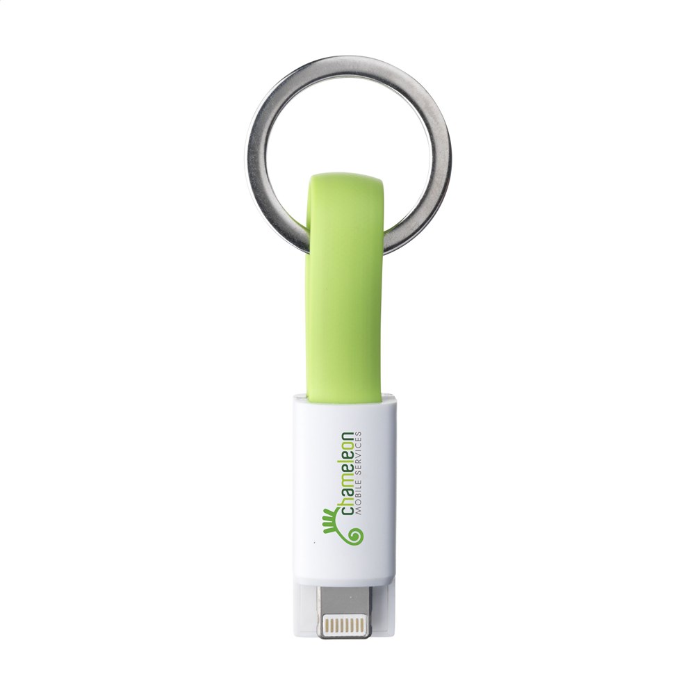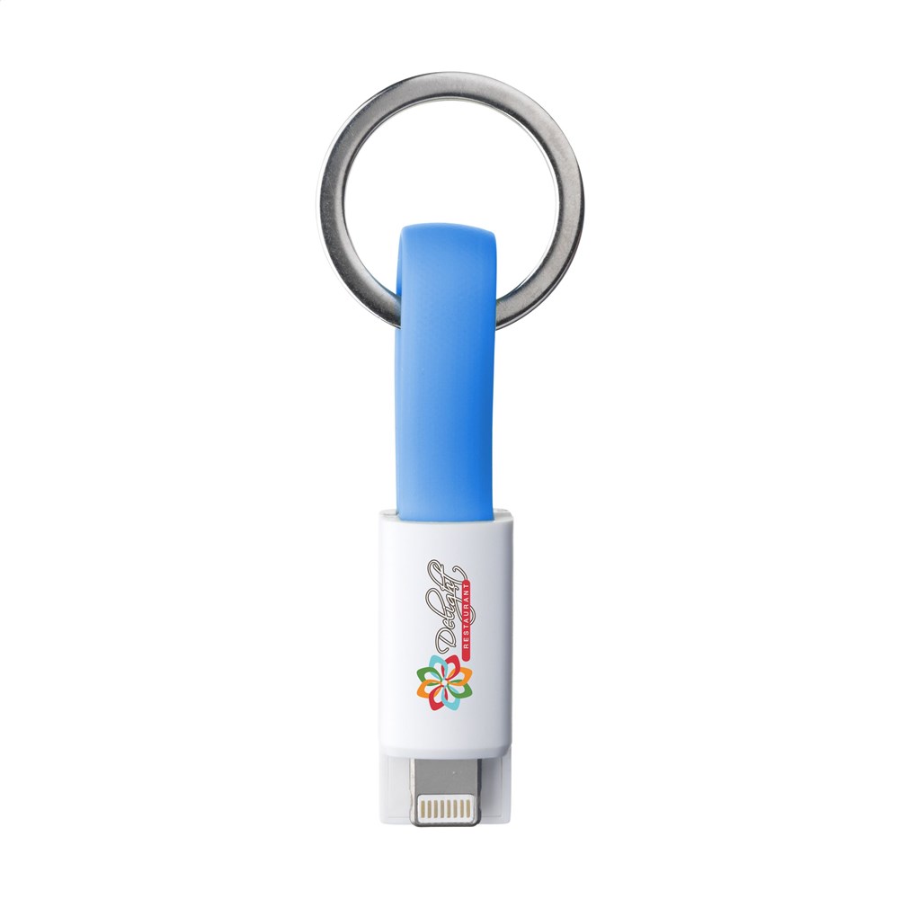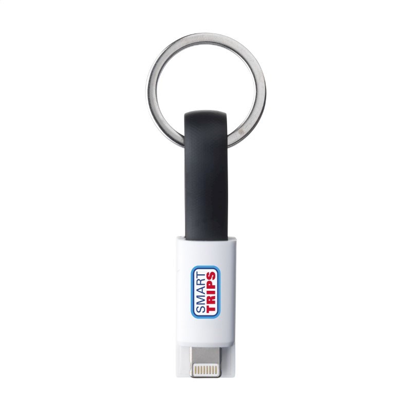 2-in-1 (iOS en micro-USB) USB laad-connector met metalen keyring voor aan je sleutelbos. Ideaal voor onderweg. Materiaal: ABS + TPE.