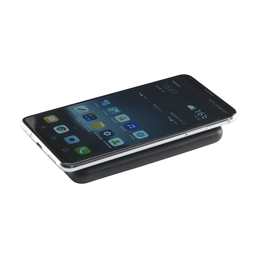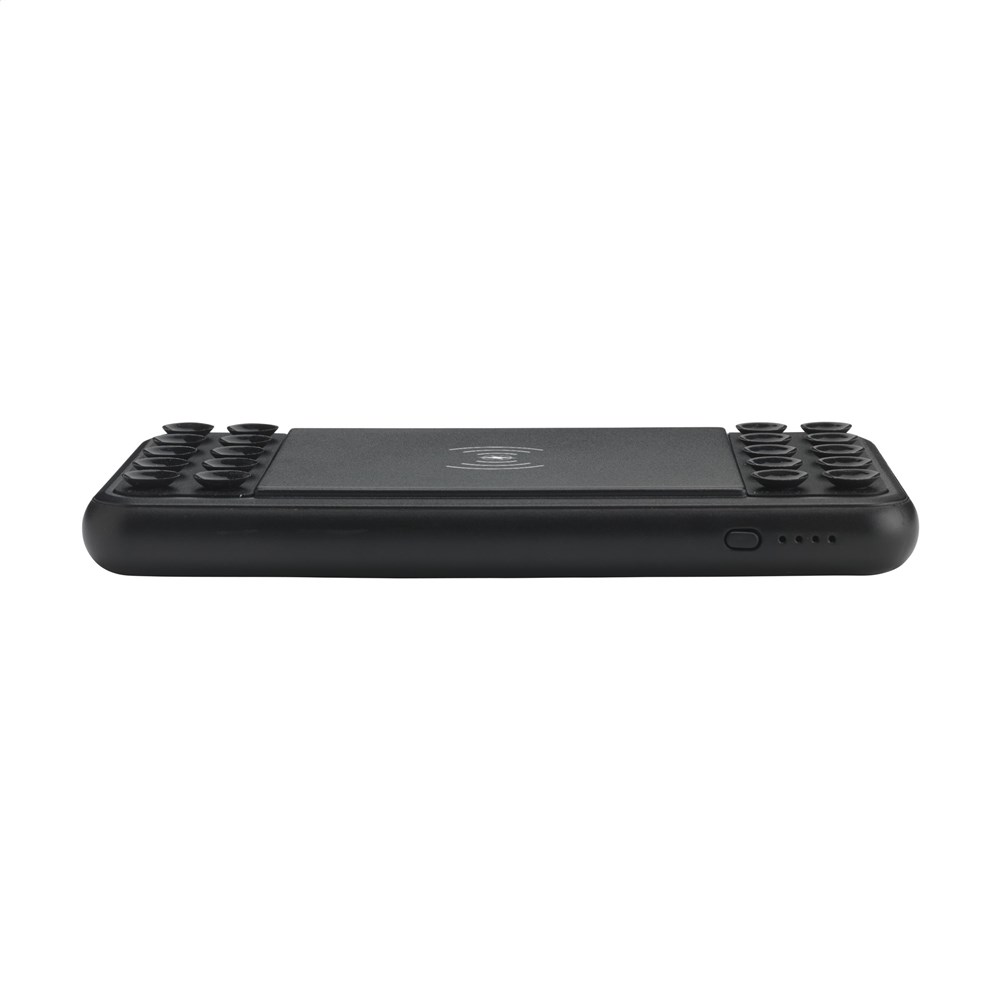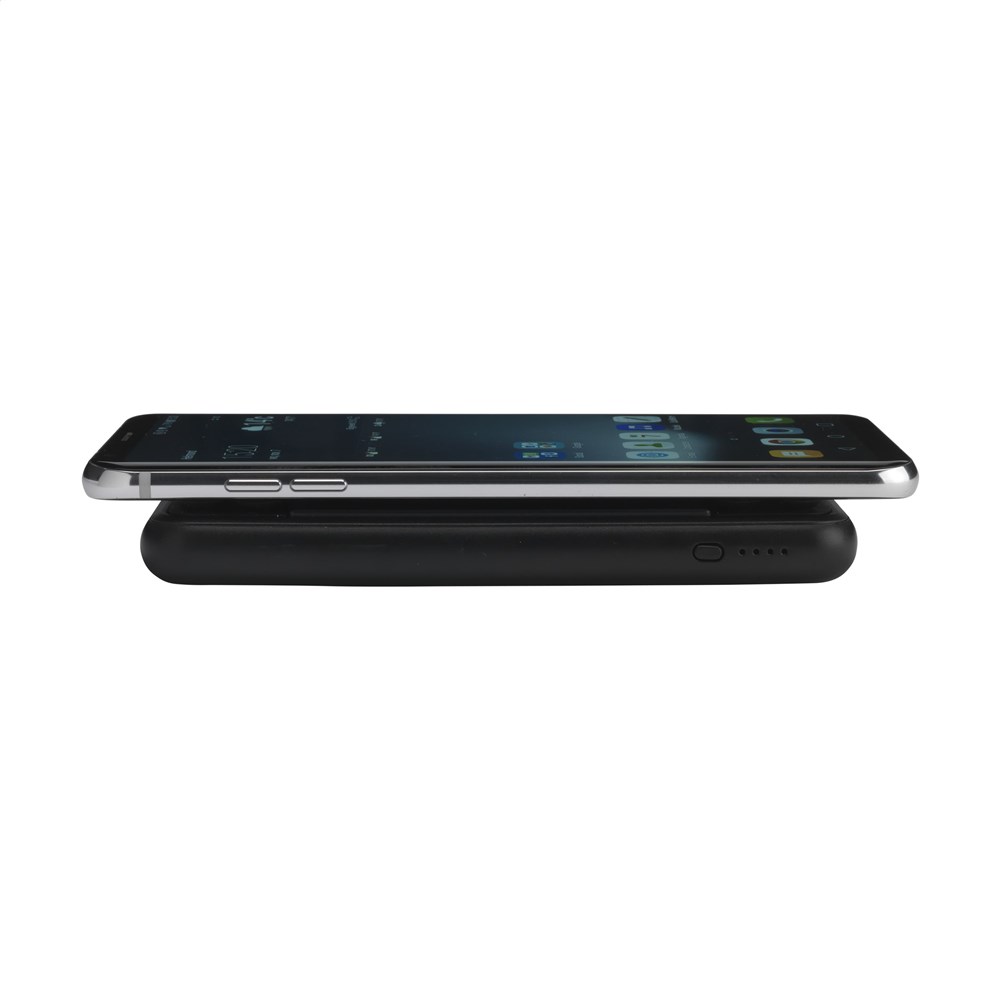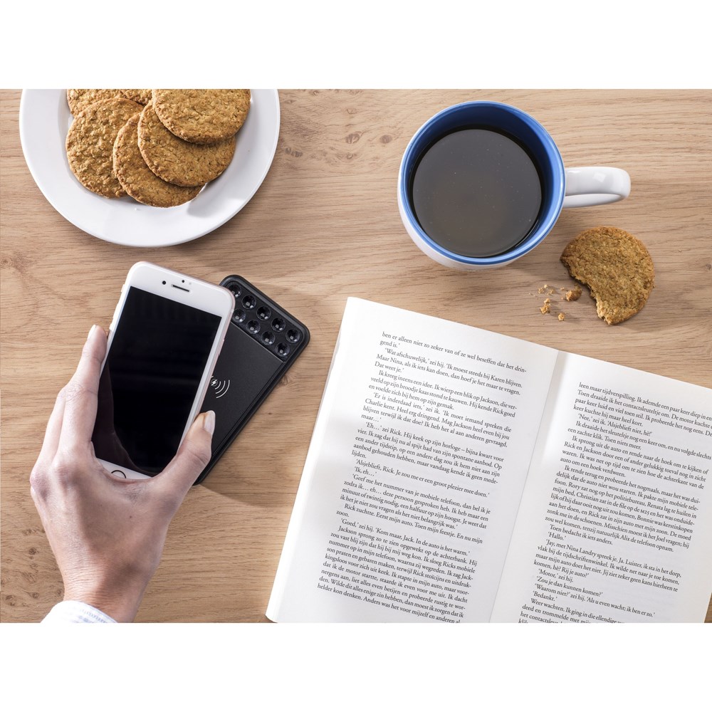 ABS wireless charging powerbank met ingebouwde polymer batterij (4000mAh). Deze alleskunner met handige zuignappen, aan/uit knop en indicatielampjes, laadt smartphones snel via kabel en beschikt over een geïntegreerde 5W wireless laadfunctionaliteit voor het draadloos opladen van mobiele apparaten die QI draadloos laden ondersteunen (nieuwste generatie Android en iPhones). Input: DC5V/1.5A. Output USB: DC5V/2.1A. Wireless output: DC5V/0.8A. Inclusief micro-usb oplaadkabel en gebruiksaanwijzing. Per stuk in doosje.