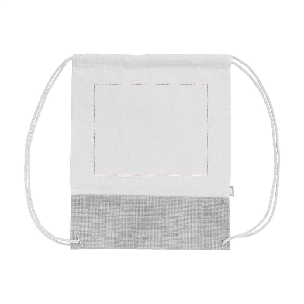 Sterke rugzak voor een milieuvriendelijke promotie. Met op elkaar afgestemde natuurlijke materialen. De tas is van organisch katoen (160 g/m²) gecombineerd met stevig jute en katoenen aanrijgkoorden. Inhoud ca. 8 liter.