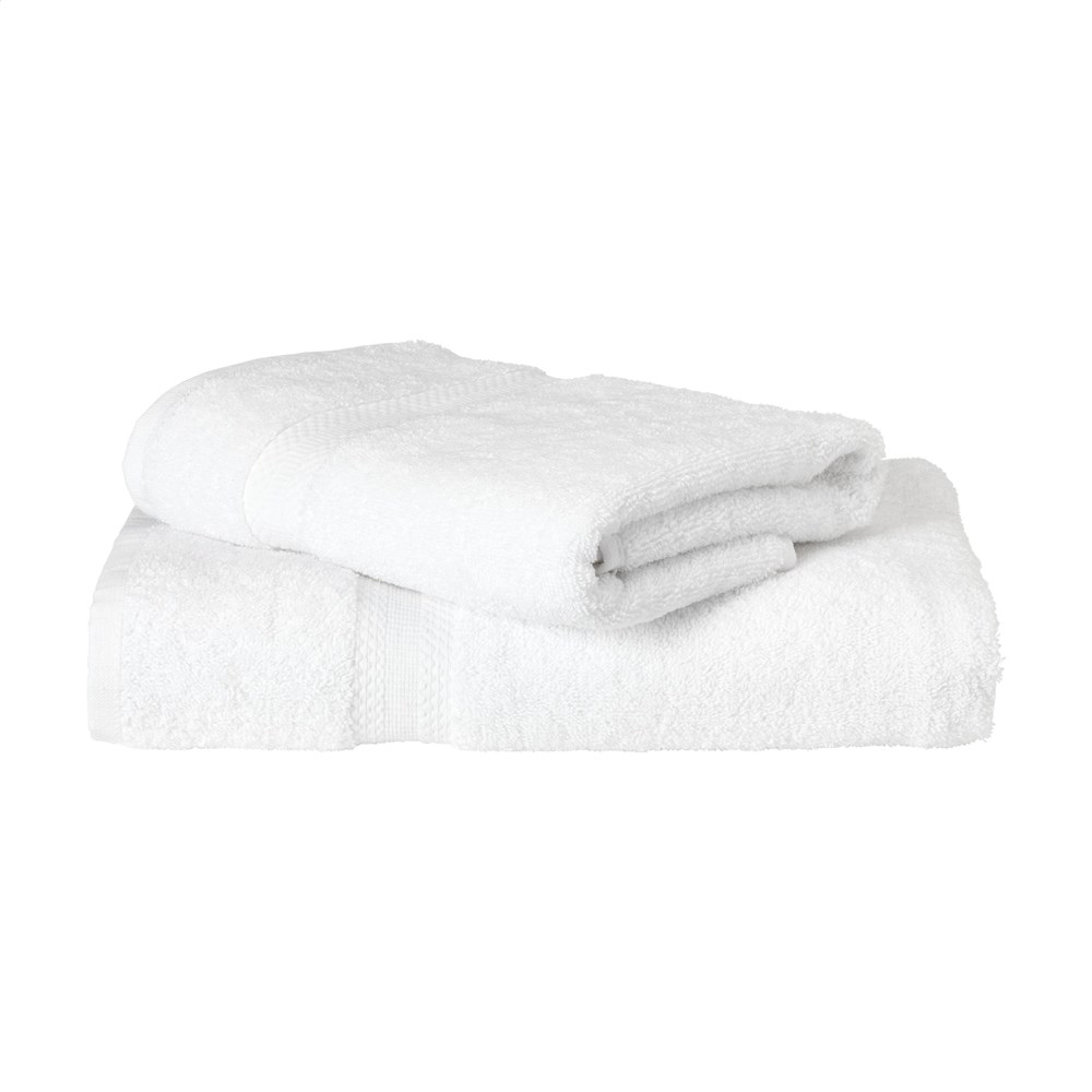 Handdoek van het merk Solaine. De zware hotelkwaliteit badstof van 100% katoen (600 g/m²) straalt comfort en luxe uit. Superzacht, donzig en comfortabel. Met mooi ingeweven band met fraai motief. Ter info: De mogelijkheden m.b.t. het borduren van kleine details in een logo (zoals bijvoorbeeld hele kleine letters) zijn bij borduren beperkter dan bij bedrukken. Het kan daarom voorkomen dat we je, na ontvangst van je logo, adviseren het logo te aan te passen of te vergroten.