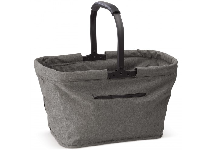Stijlvolle en handige boodschappenmand. Het gemêleerde materiaal in combinatie met het zwarte metaal geeft deze mand een luxe uitstraling. Het handvat is bekleed met zacht rubber voor extra comfort. Voorop zit een vak met ritssluiting.