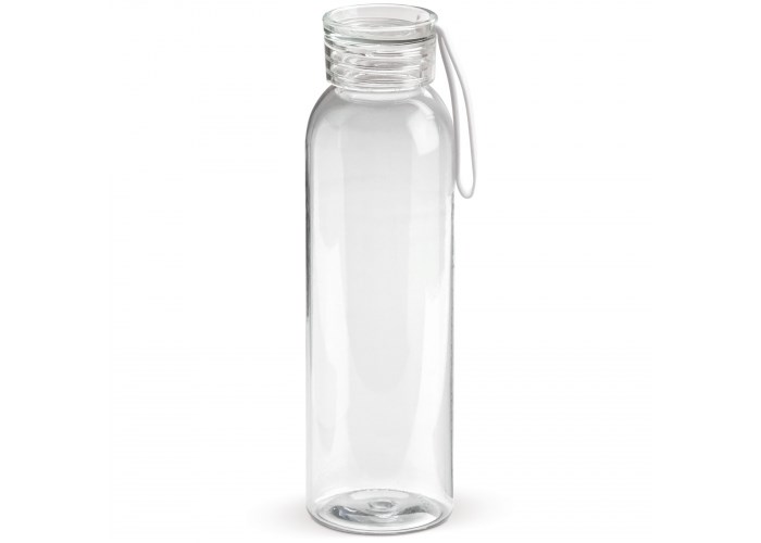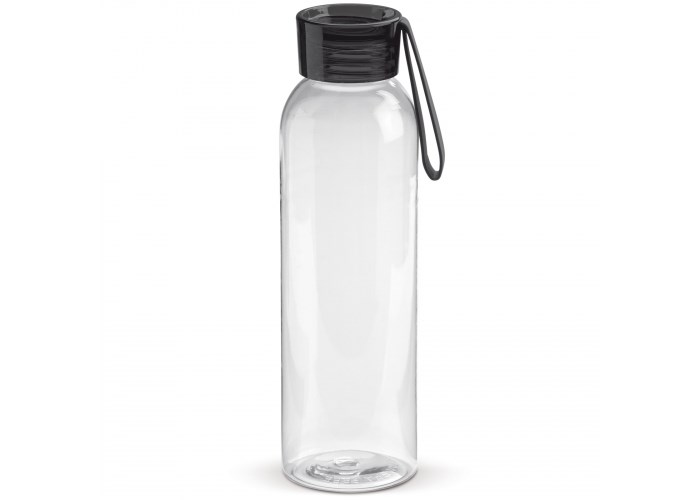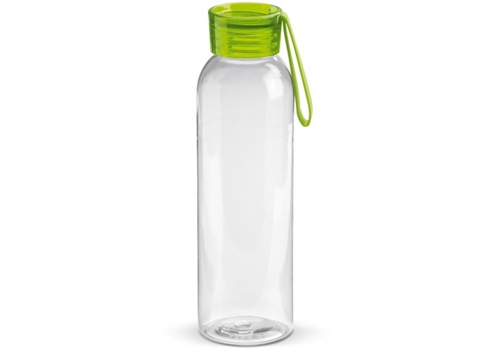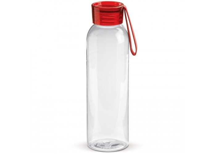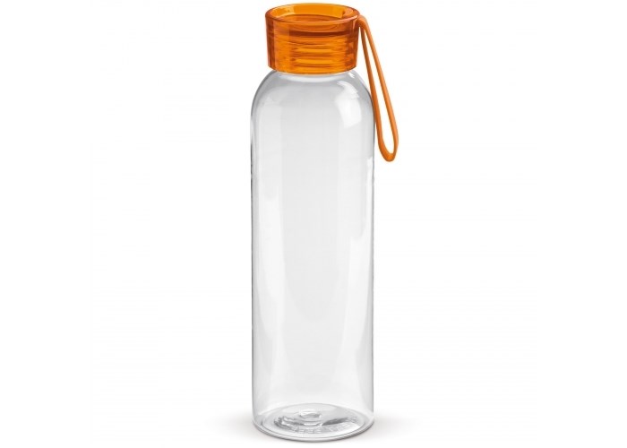 Transparante Tritan drinkfles met gekleurde dop. Deze handige waterfles is uitgerust met een siliconen band zodat deze eenvoudig te dragen is of aan bijvoorbeeld een tas bevestigd kan worden. Geschikt voor koude, niet-koolzuurhoudende dranken.