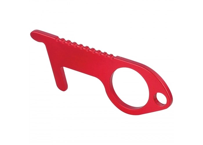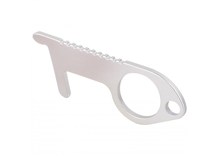 De clean hands sleutelhanger is een veiligere manier om objecten in openbare ruimtes zoals resistieve touchscreens, deuren en knoppen te gebruiken. De tool maakt het mogelijk om deuren te openen en bijvoorbeeld knoppen in te drukken zonder direct contact met deze besmettelijke oppervlakken. Dit vermindert de blootstelling aan bacteriën en kan worden gepersonaliseerd met een opdruk. Gemaakt van aluminium.
