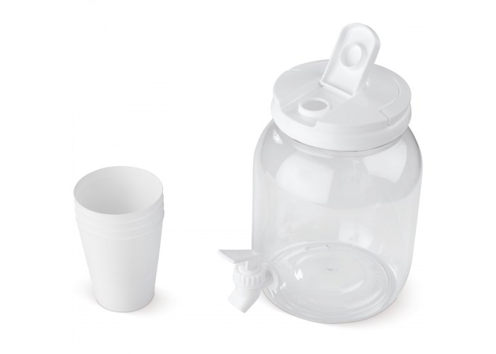 Drankdispenser met kraantje waar eenvoudig drankjes uit getapt kunnen worden. De dispenser is ideaal voor niet koolzuurhoudende dranken zoals limonade, wijn of water met fruit en ijs. Wordt geleverd met vier bekertjes (15cl). Geschikt voor koude (niet koolzuurhoudende) dranken.