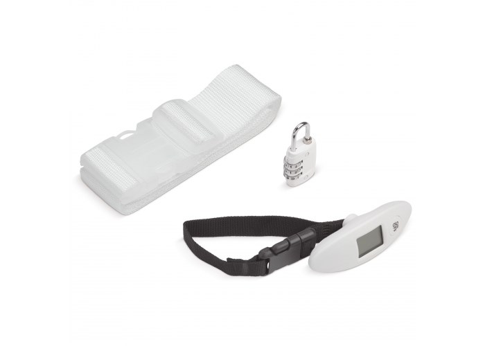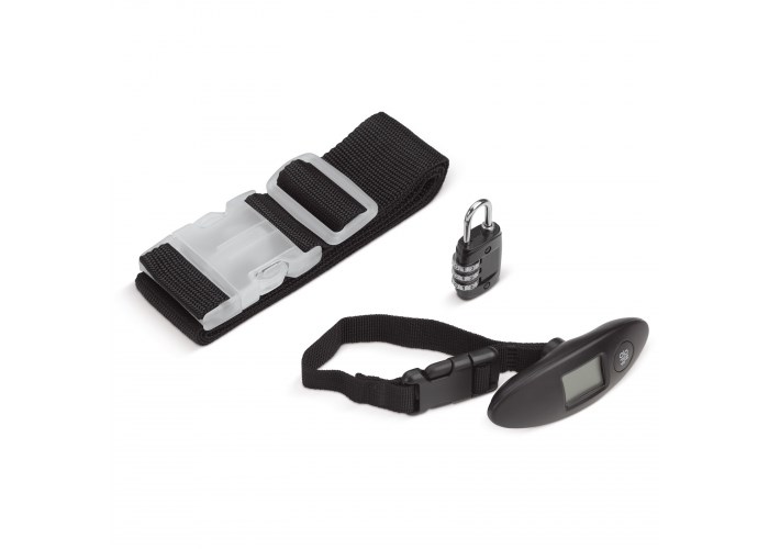 Ga goed voorbereid op reis met deze drie-delige reisset. Met de kofferweger behoort betalen voor extra kilo's tot de verleden tijd. Met de kofferband en het slot blijven eigendommen veilig opgeborgen.
