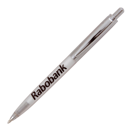 TIJAT plastic balpen frosty Peekay met metalen achterkant en clip. Met blauw schrijvende langschrijfvulling