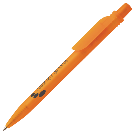 TUN kunststof balpen frosty Peekay. Stijlvolle promobalpen met volumineuze houder en asymmetrische clip in actuele frosty kleuren en blauwschrijvende plastic langschrijfvulling