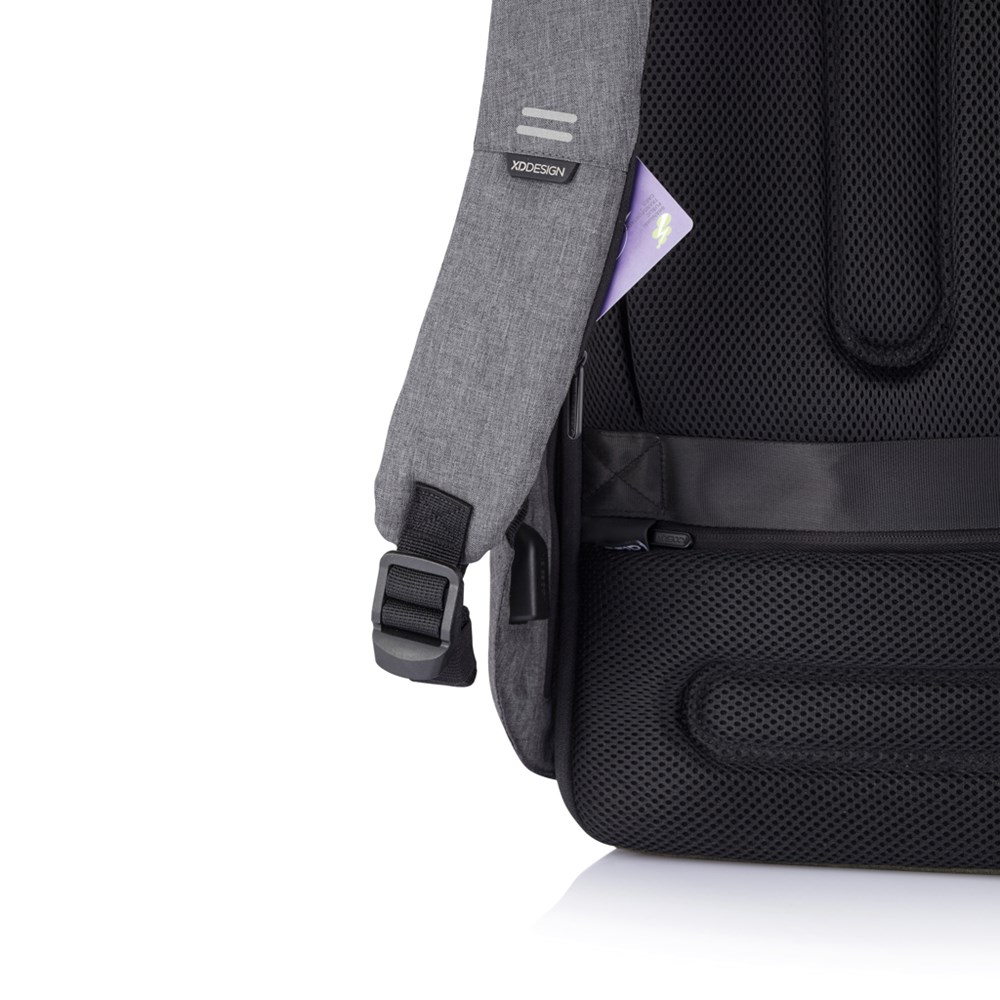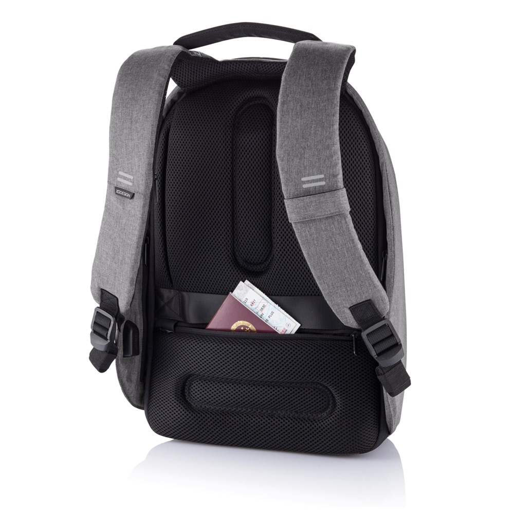 De Bobby Hero lijn is onze nieuwe generatie anti-diefstal rugzakken. Dit nieuwe model helpt u om altijd veilig, zorgeloos en georganiseerd te reizen. Het snijvaste en waterafstotende materiaal waar de tas van gemaakt is en de verborgen ritssluitingen & zakken houden uw spullen veilig terwijl u onderweg bent. Bobby Hero is ook een heel handige rugzak met functies zoals een geïntegreerde USB-laadpoort, oplichtende veiligheidsstrips en een bagageband. Aan de binnenkant zitten gewatteerde compartimenten voor een 17" laptop, tablet tot 12,9" en al uw andere spullen. De rugzak is gemaakt van rPET (gerecyclede PET-flessen). Geregistreerd ontwerp®