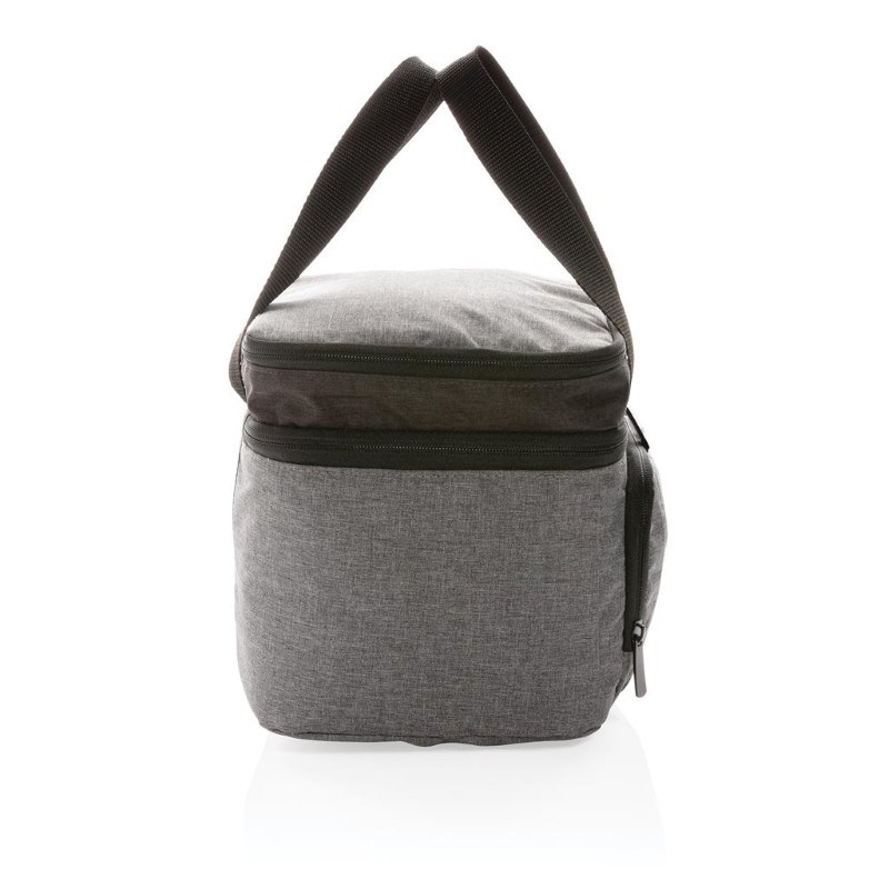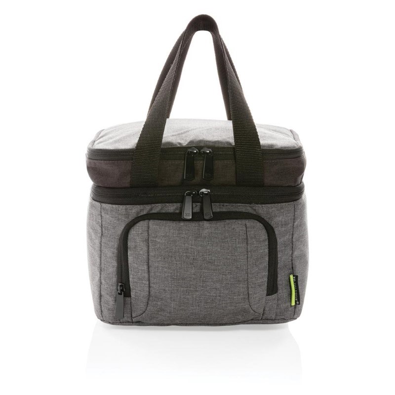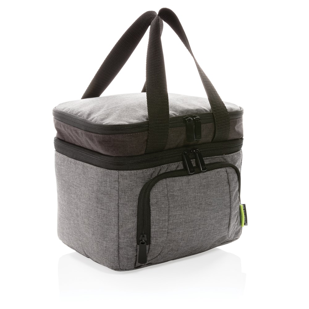 De stijlvolle koeltas gemaakt van RPET heeft een groot compartiment om je eten mee te nemen en is geschikt voor maximaal 8 blikjes. Leg je broodjes in het bovenste vak met rits en je bent klaar om te gaan! De koeltas is voorzien van een lekbestendige, eenvoudig te reinigen voering. Gemaakt van duurzaam rPET. Buitenkant: 100% 300D rPET. Voering: 100% PEVA. Geregistreerd ontwerp®