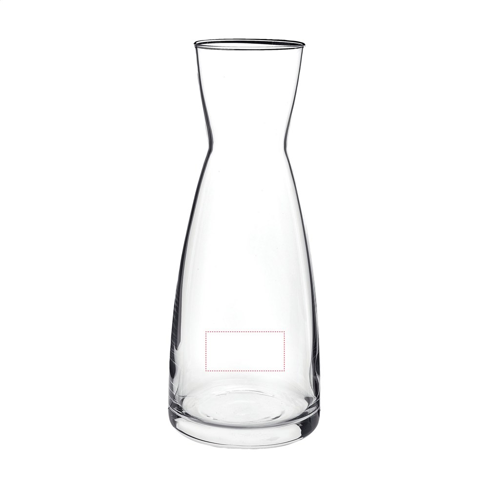 Sierlijke, glazen karaf. Een tafelfles voor het serveren van water, sap of alcoholische dranken. Met royale opening voor het toevoegen van ijsklontjes en gemakkelijk te reinigen. Inhoud 1.000 ml.