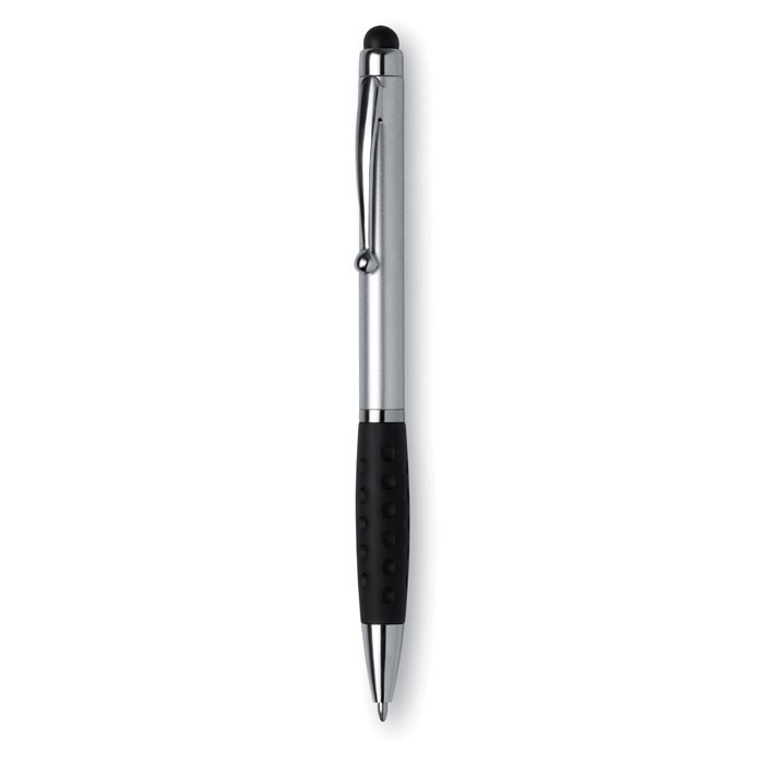 Kunststof balpen met draaimechanisme van ABS met metalen afwerking, ABS grip en siliconen touch tip voor touchscreens. Blauwe inkt.