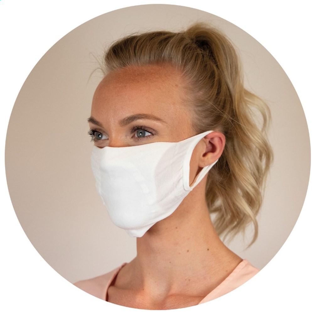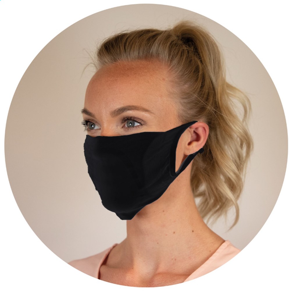 Dubbellaags herbruikbaar gezichtsmasker met ruimte voor een filter voor extra bescherming gemaakt in Europa. Gemaakt van zacht en rekbaar OEKO-TEX® gecertificeerd polyamide wat zorgt dat het comfortabel is om te dragen. Het gezichtsmasker kan op 90 graden in de wasmachine worden gewassen. Let op: dit is geen medisch mondmasker of PBM (persoonlijke beschermingsmiddelen). Enkel bedoeld voor persoonlijk gebruik. Wassen voor gebruik.