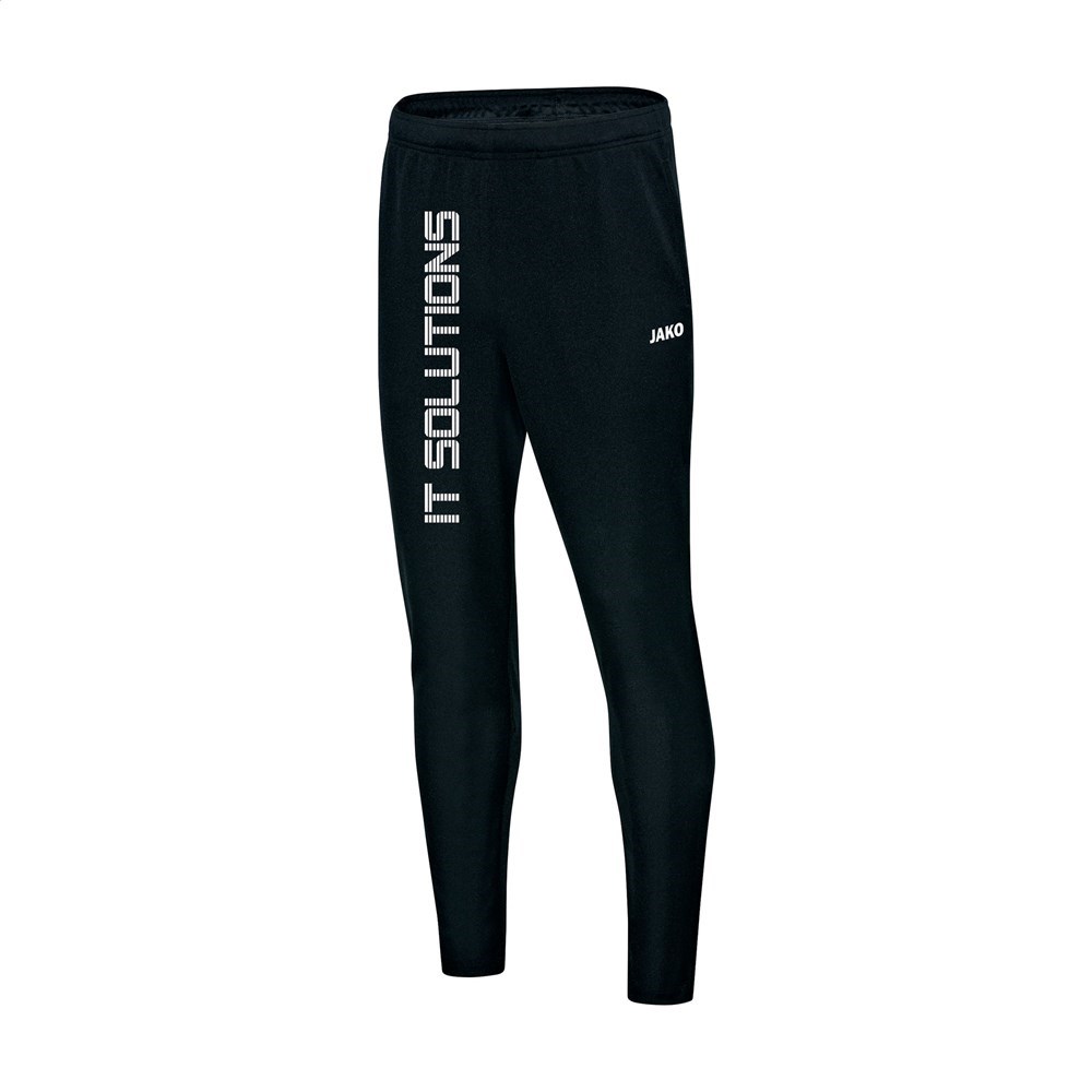 Trainingsbroek voor kinderen. Van het merk Jako®. Voor sportieve activiteiten • polyester-piqué, 100% polyester • ripp-inzet ter hoogte van de kuit • steekzakken met rits • beenafsluiting met rits • elastische boord met tunnelkoord. Leverbare maten: S (116), M (128), L (140), XL (152) en XXL (164).