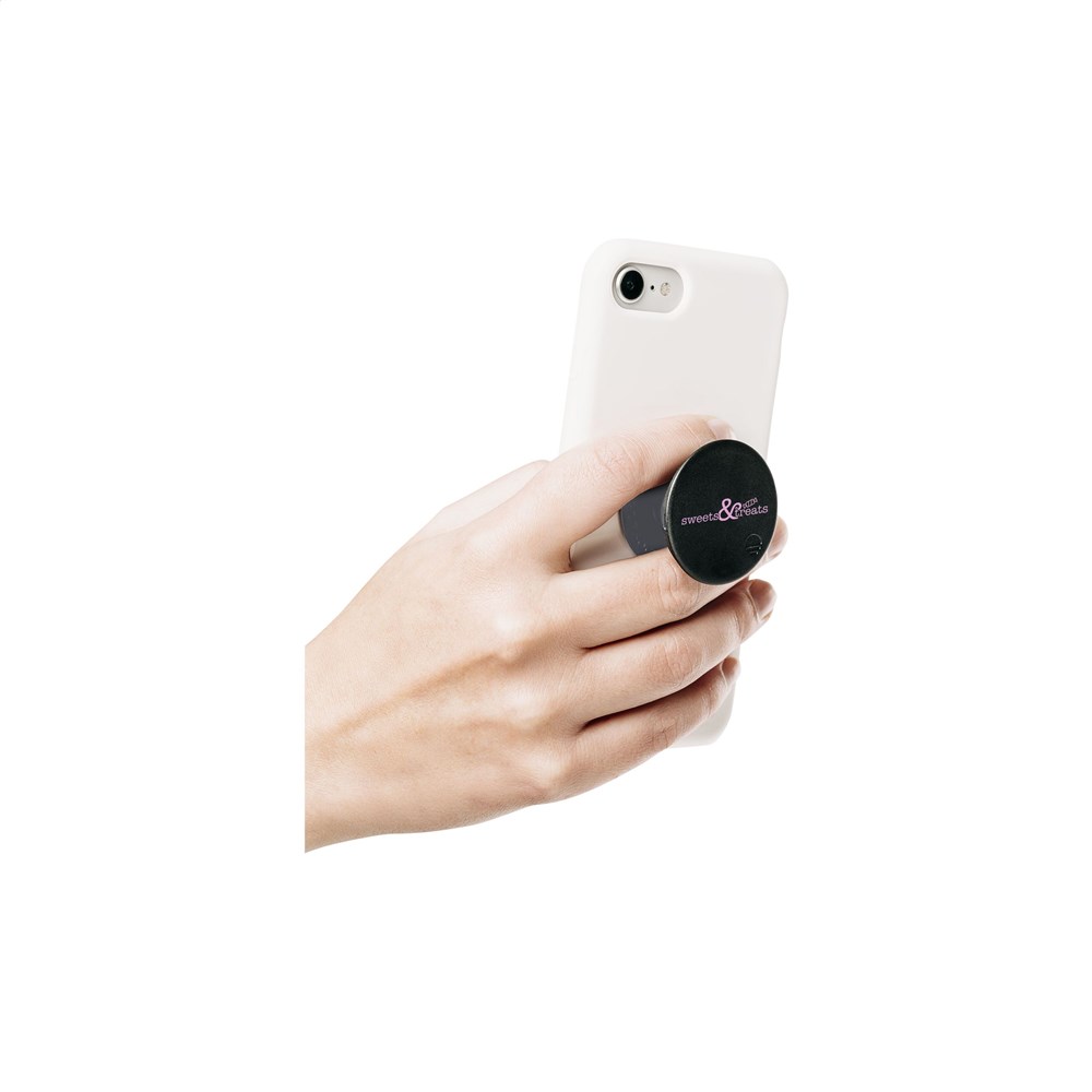 De PopSockets® is een handig multifunctioneel telefoonaccessoire. Met kunststof PopGrip en PopTop, inclusief opdruk in elk gewenst design in full colour. Bevestig dit item met de 3M plakstrip aan de achterzijde van je telefoon en maak gebruik van de handige functies; comfortabele grip voor extra houvast, functionele standaard en selfie-houder. Te positioneren in 2 verschillende pop-up standen en flexibel zodat je de smartphone in elke gewenste positie kunt zetten. De PopSocket® is gemakkelijk te verwijderen en tot wel 10 keer opnieuw te gebruiken. Geschikt voor alle gangbare modellen smartphones, iPhones en andere devices. Licht in gewicht en ook handig voor het oprollen van je earphone kabeltjes. Lees voor optimaal gebruik en behoud van de PopSocket® de bijgeleverde instructies. Extra info inzake levertijd: 120 - 2.500 stuks: 1 week | 2.500 - 5.000 stuks: 2 weken. Vanaf 5.000 stuks prijs en levertijd op aanvraag. PopSockets® worden alleen mét opdruk geleverd.