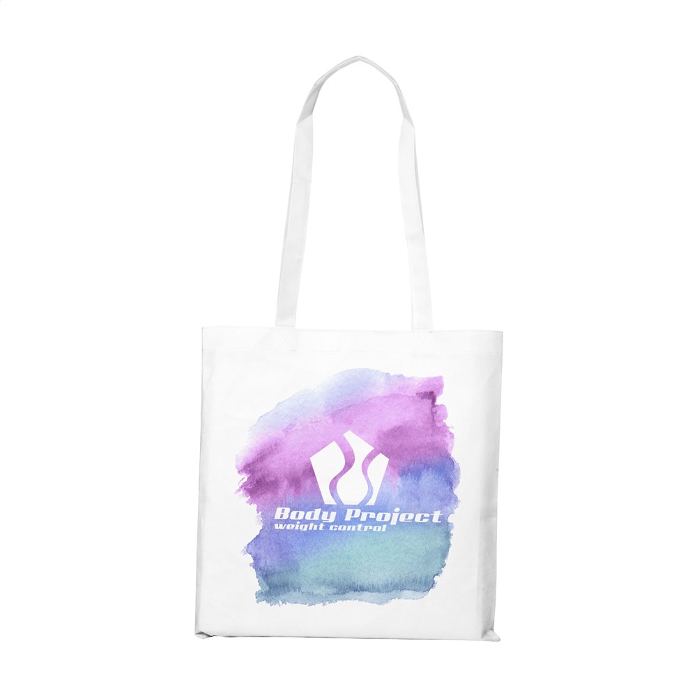 Praktische, royale winkeltas met lange hengsels. Van nonwoven materiaal (120 g/m²). Oersterk, superlicht en dichtgeweven. Uitstekend te bedrukken met elke gewenste opdruk in full colour.