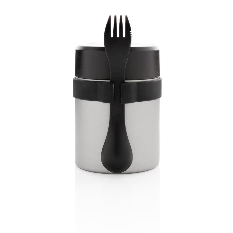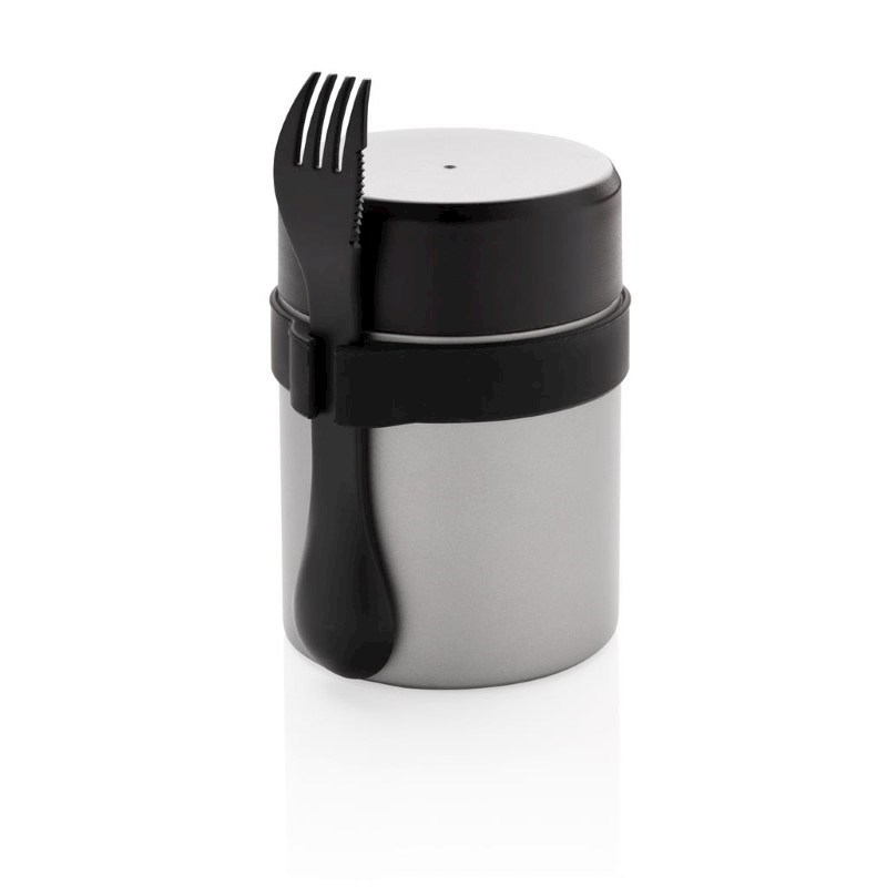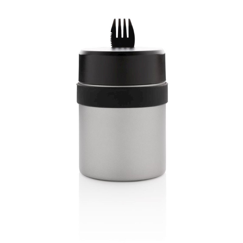 Geen bijsmaak van roestvrij staal meer, maar alleen de smaak van uw verse maaltijd! Dat is genieten. Houd uw dranken of maaltijden maximaal 5 uur warm en koel tot 15 uur met deze vacuümgeïsoleerde voedselcontainer. Op de binnenwand is een keramische all-over coating aangebracht die een mogelijk metaalachtige smaak voorkomt. Wordt geleverd met alles-in-één vork, mes & lepel. Lekvrije deksel. Inhoud: 400 ml. Geregistreerd ontwerp®