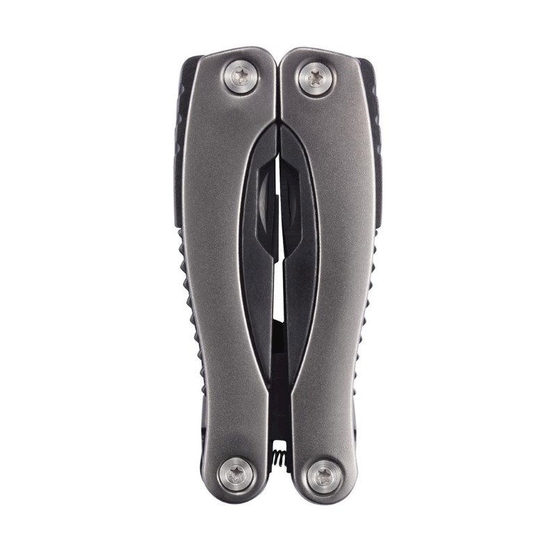 14 functies roestvrijstalen multitool met geanodiseerd aluminium handvat, verpakt in etui.