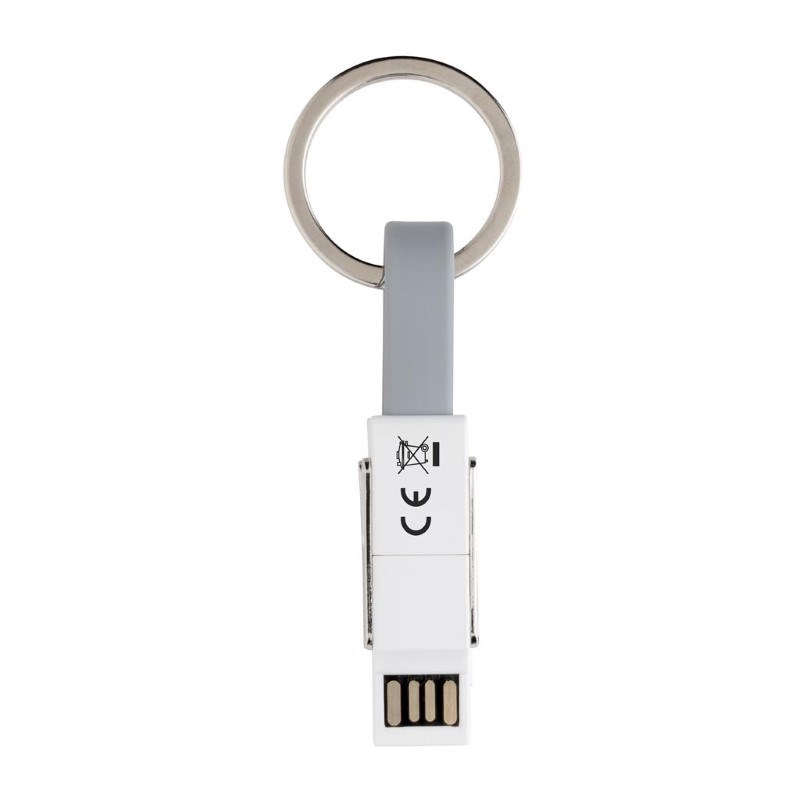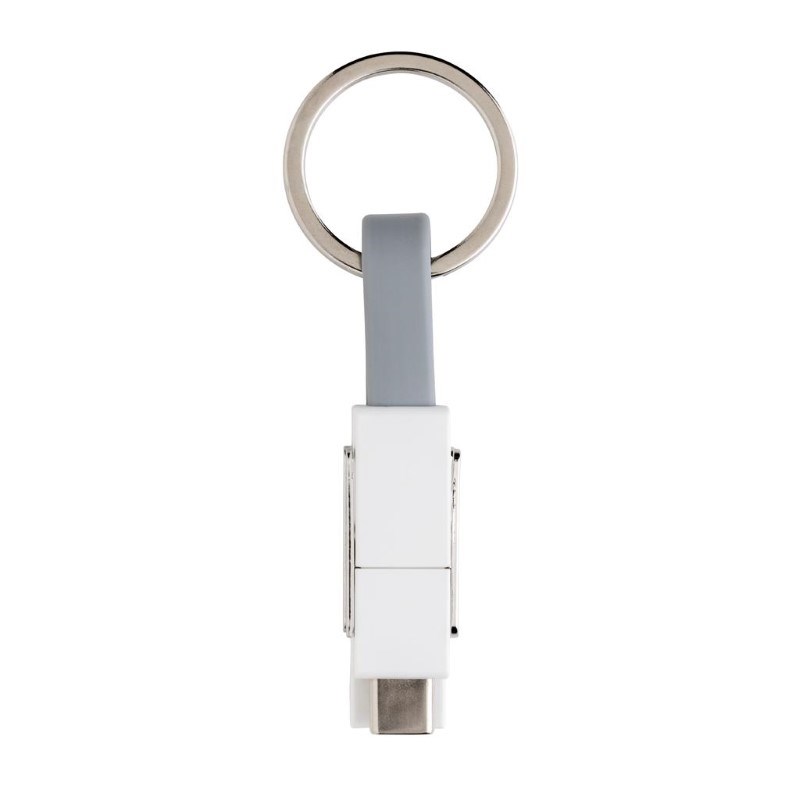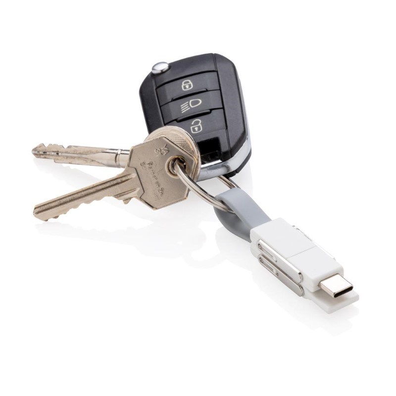 Sleutelhanger-kabel met 3 verschillende connectoren: micro-USB, type C en een dubbelzijdige lightning stekker voor IOS- en Android-apparaten. U kunt het apparaat aansluiten op een stopcontact of oplader via Type C of USB. Geschikt voor het opladen en synchroniseren van gegevens. Beide uiteinden kunnen met een magneet worden verbonden om de kabel compact en gemakkelijk te dragen te houden.