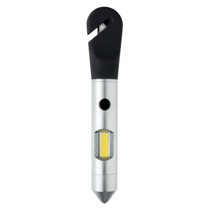 Multifunctionele auto tool met COB licht, veiligheidshamer, gordelsnijder en magneet. Het licht kan in een noodsituatie omgezet worden naar een rood alarm licht en kan met de magneet aan de auto bevestigd worden. Gemaakt uit hoogwaardig aluminium. Inclusief 4 batterijen voor direct gebruik.