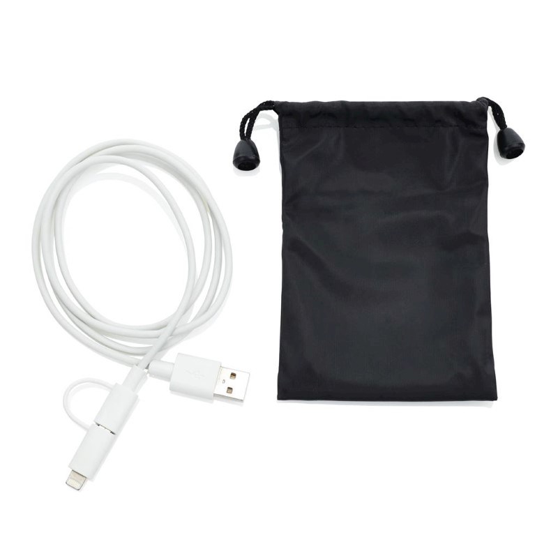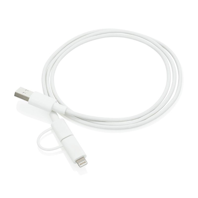 MFi (gemaakt voor iPhone en iPad) gelicentieerde oplaad- en sync-kabel. Wordt zowel met een MFi gelicentieerde lightning stekker als een micro USB-stekker geleverd om andere apparaten op te laden of te synchroniseren. Lengte: 1 meter.