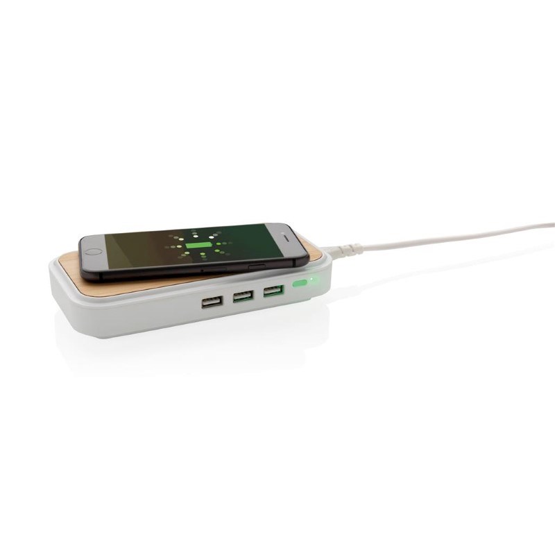 Bamboe 5W draadloze oplader met 3 USB-poorten, bruin